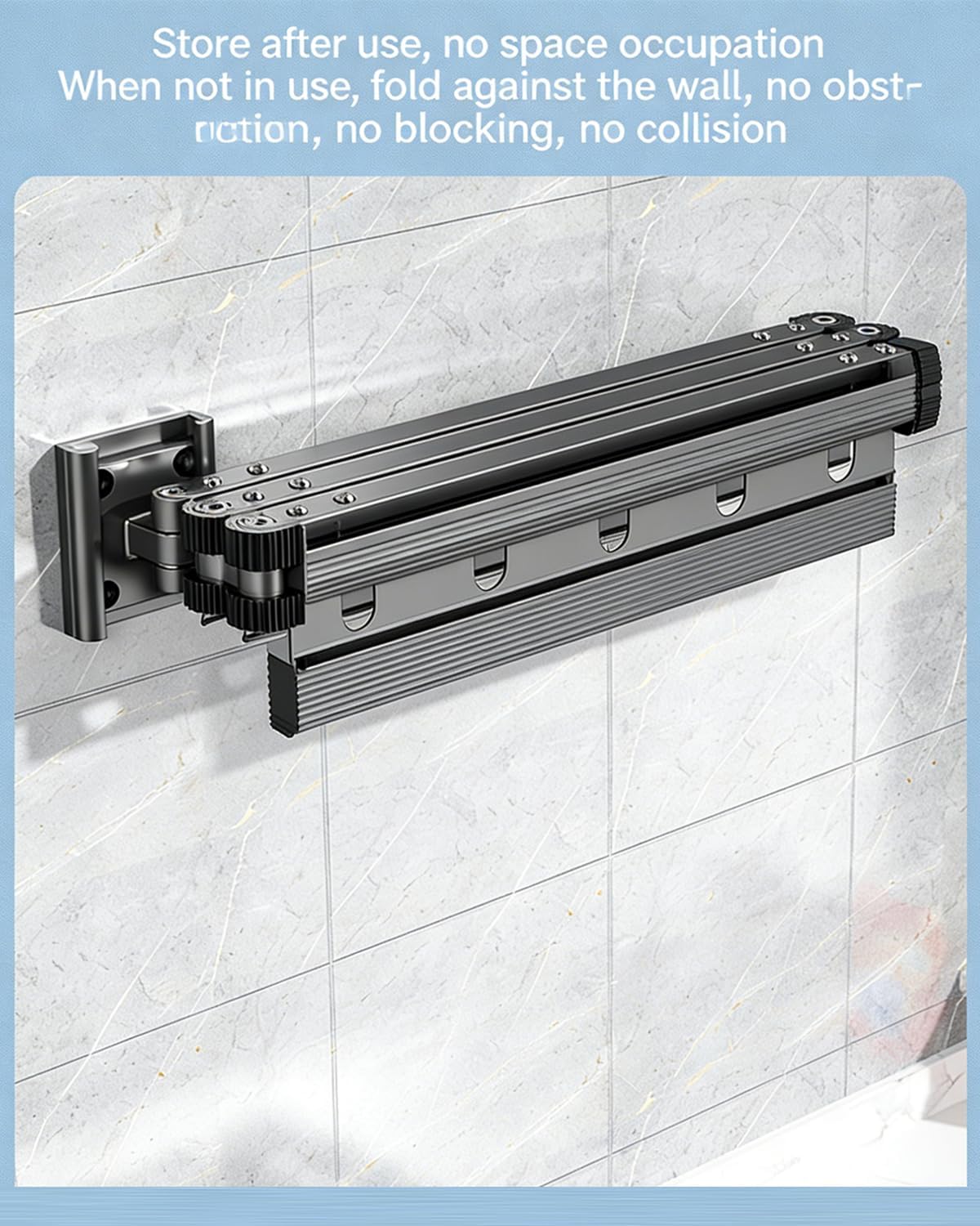 Space Saving Design - 3-fold wall mounted drying rack folds flat to save space Durable Aluminum Rods - Rust-resistant material for long-term indoor use Expandable Structure - Extends when needed, retracts after drying Multi-Room Use - Suitable for laundry room, bathroom, balcony or garage Minimalist Appearance - Clean lines complement modern home interiors Product Name: Trifold Clothes Drying Rack Material: Aluminum alloy rods with metal mounting bracket Color: Black Weight: Approx. 1.8 lbs Dimensions: Approx. 126 cm (L) × 7 cm (W) × 6 cm (H) when folded; extends outward when opened Package includes: 1 × Trifold Clothes Drying Rack, 1 × Mounting Hardware Kit, 1 × Installation Guide Note: Designed for installation on solid walls such as wood studs or concrete. Not recommended for unsupported drywall without proper anchors. Please follow the installation guide carefully.