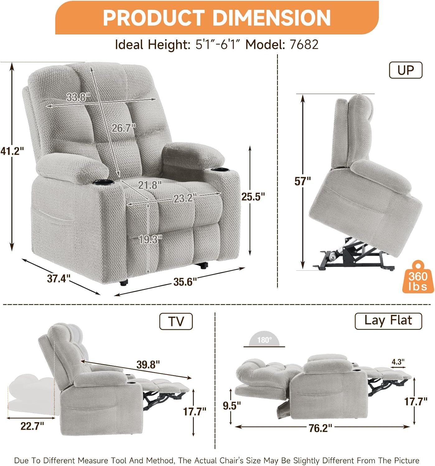 dual motor power lift chair recliner for elderly with massage and heated, infinite position plush fabric lift chair for lay flat