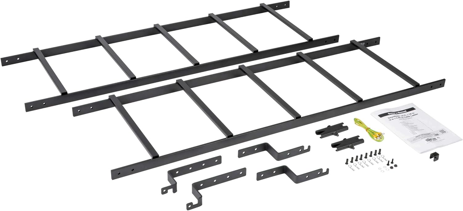 Eliminate cable stress by organizing cabling outside your enclosure or open frame rack The smart Rack Srcableladder18 mounts to the top of your rack enclosure or open frame rack for overhead cable routing. Install it either parallel or perpendicular to the rack for clean, organized cable routing across an aisle or within a row. Each srcableladder measures 10 feet long and 1.5 Feet Wide for safe cable bundling. It requires the use of Tripp Lite srcabletray (for enclosures) or srladderattach (for open frame racks) for installation (both accessories sold separately). an included grounding stud allows tie-in to the rack and facility ground. The Srcableladder18 ships in two five-foot sections for convenient storage and assembly.