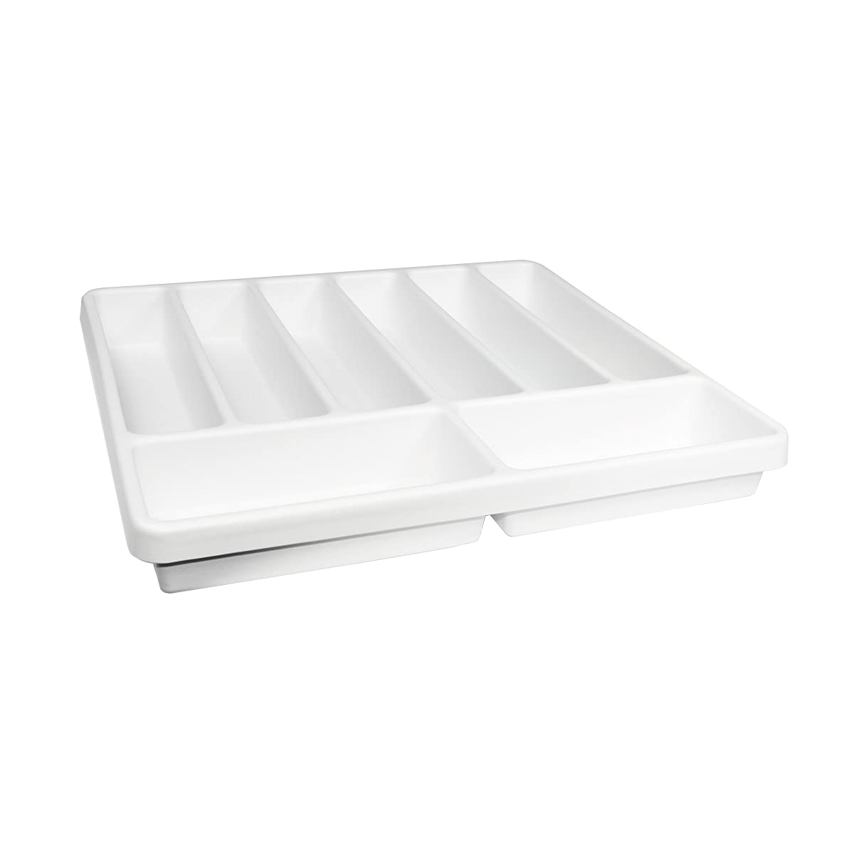 TrippNT's Five Compartment Drawer Organizer plastic tray sorts, stores, protects and transports supplies. This drawer organizer is made from white, durable high impact styrene. Its rounded inside corners are easy to clean and allows for fast transportation of supplies. Organize and protect cluttered drawers, cabinets and benches. The five compartments are great for holding pipettes, syringes, needles, tubes and other items. 16.8 x 2.4 x 12.9 inches (width height depth); .75 pounds