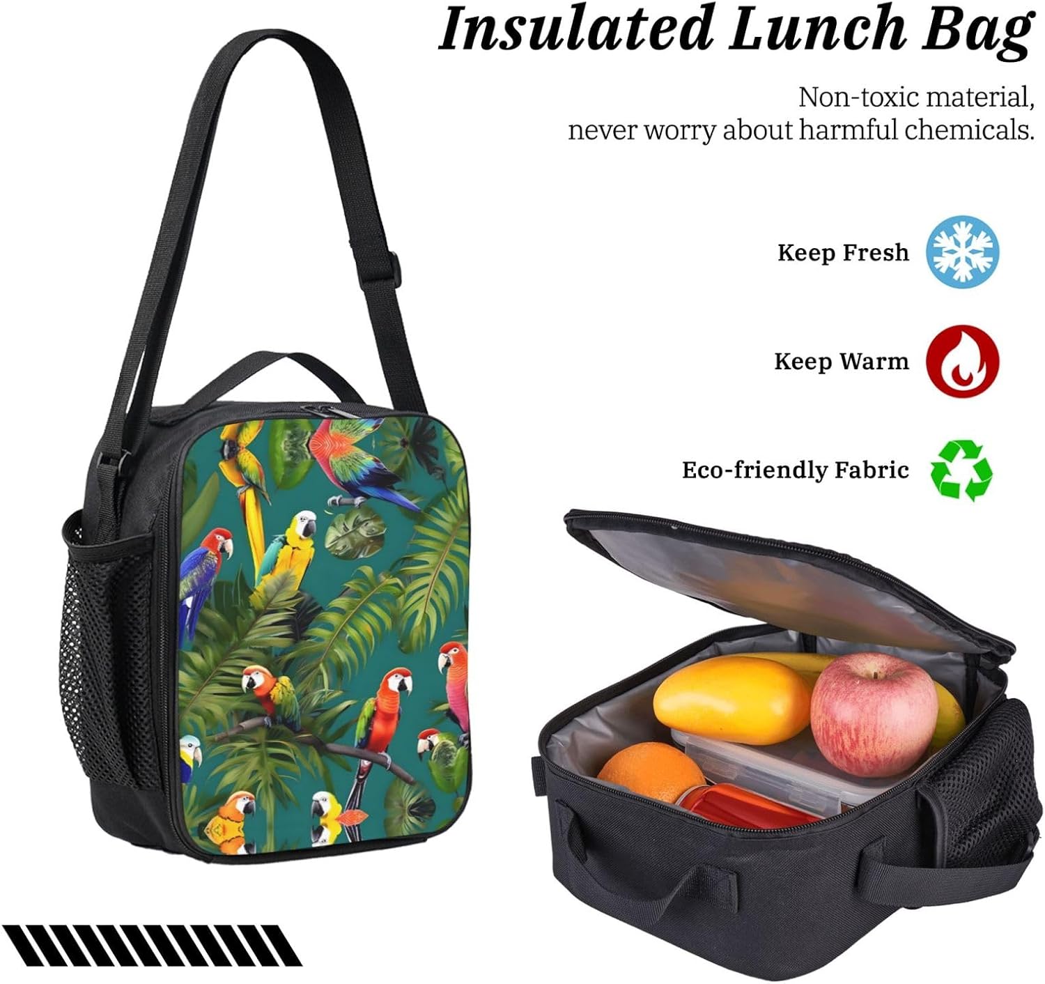 The Tropical plants and parrots print Backpack with Lunch Bag, Pencil Case is made from robust Oxford fabric that provides a reliable and long-lasting performance for anyone who values functionality. The dimensions of the backpack (12.6x5.1x17 inches) allow for comfortable storage of your essentials, while the lunch bag keeps your food at the right temperature, perfect for day trips or outdoor activities. The pencil case offers a tidy solution for your writing materials, completing the set with added practicality and style for a variety of uses, from hikes to daily errands.