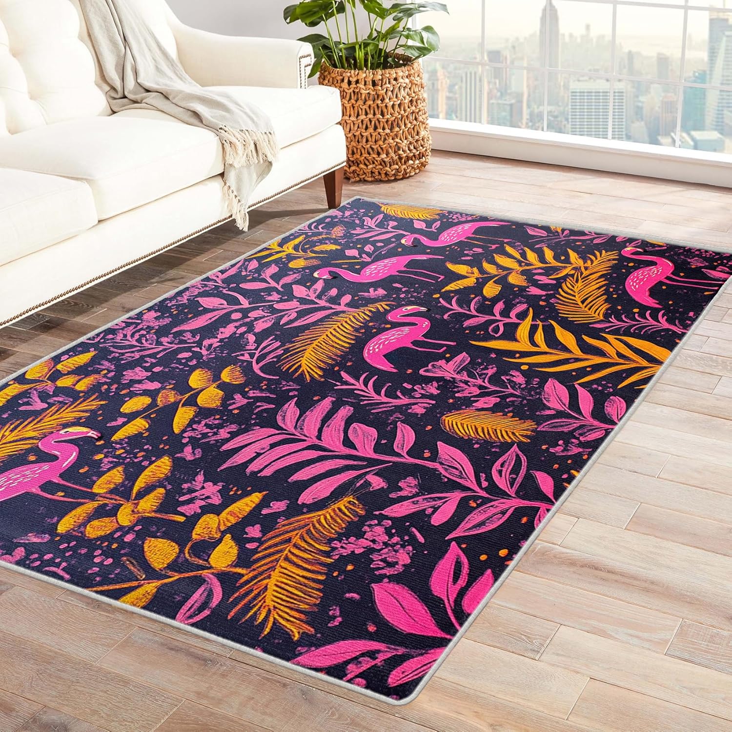 Tropical Carpet Chic prints and trendy styles for a fabulous experience! Multiple sizes and themes to choose from. You can choose a style that match your curtains or other bedroom accessories in your home. 0.25 inch thin, low profile carpet is easy to place under furniture or doors. Foldable & easy to store. This rug can be used in most areas of your home, also under table, bed side, closet, under desk, and couch etc. A must have for your home.
