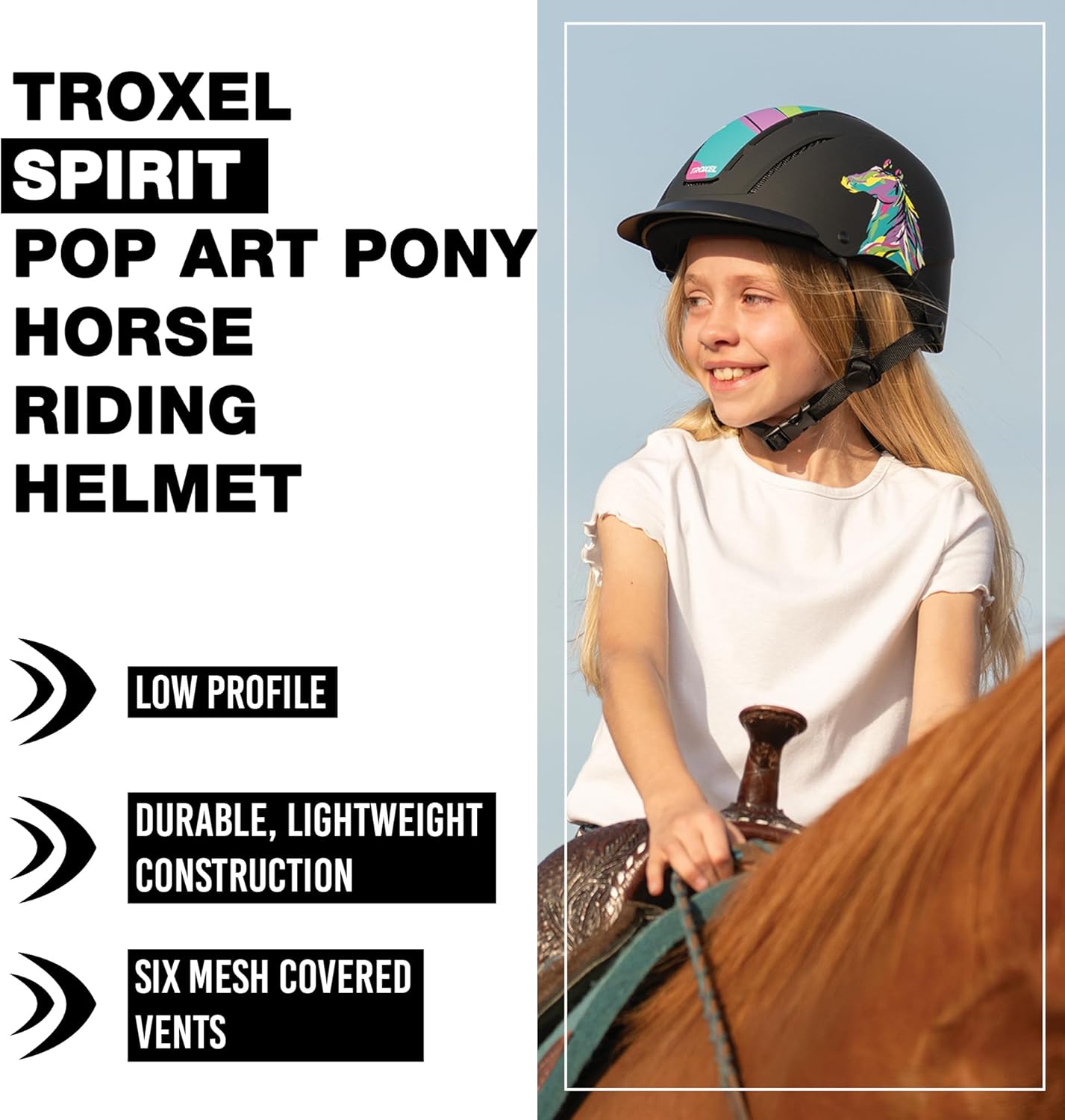 Troxel Horse Riding Helmet: Must-have equestrian gear for children and adults, competitive riders, equine enthusiasts, and a reliable accessory for riders of all experience levels. Our equestrian riding helmets provide superior performance and ease of use. Suitable to wear for daily rides, training sessions, events, racing, jumping, or equestrian sports. Designed for full coverage protection, this horse helmet offers incredible comfort and security. Unlike traditional riding helmets, our full cover horse riding helmets for women, men, and children create the most comfortable fit for a variety of head shapes. Choose from a wide range of colors, patterns, styles, finish, and sizes for a personalized look and fit. It is a great option for riders looking to match their horse's gear or boldly show off their sense of style! Available in extra small, small, medium, and large sizes, ideal helmet gear for every rider. The sturdy material of this horse accessory can stand up to the rigors of equestrian activity and is designed for long-lasting use. Our horseback riding helmets are an ideal gift for horse showmen and equine owners alike.