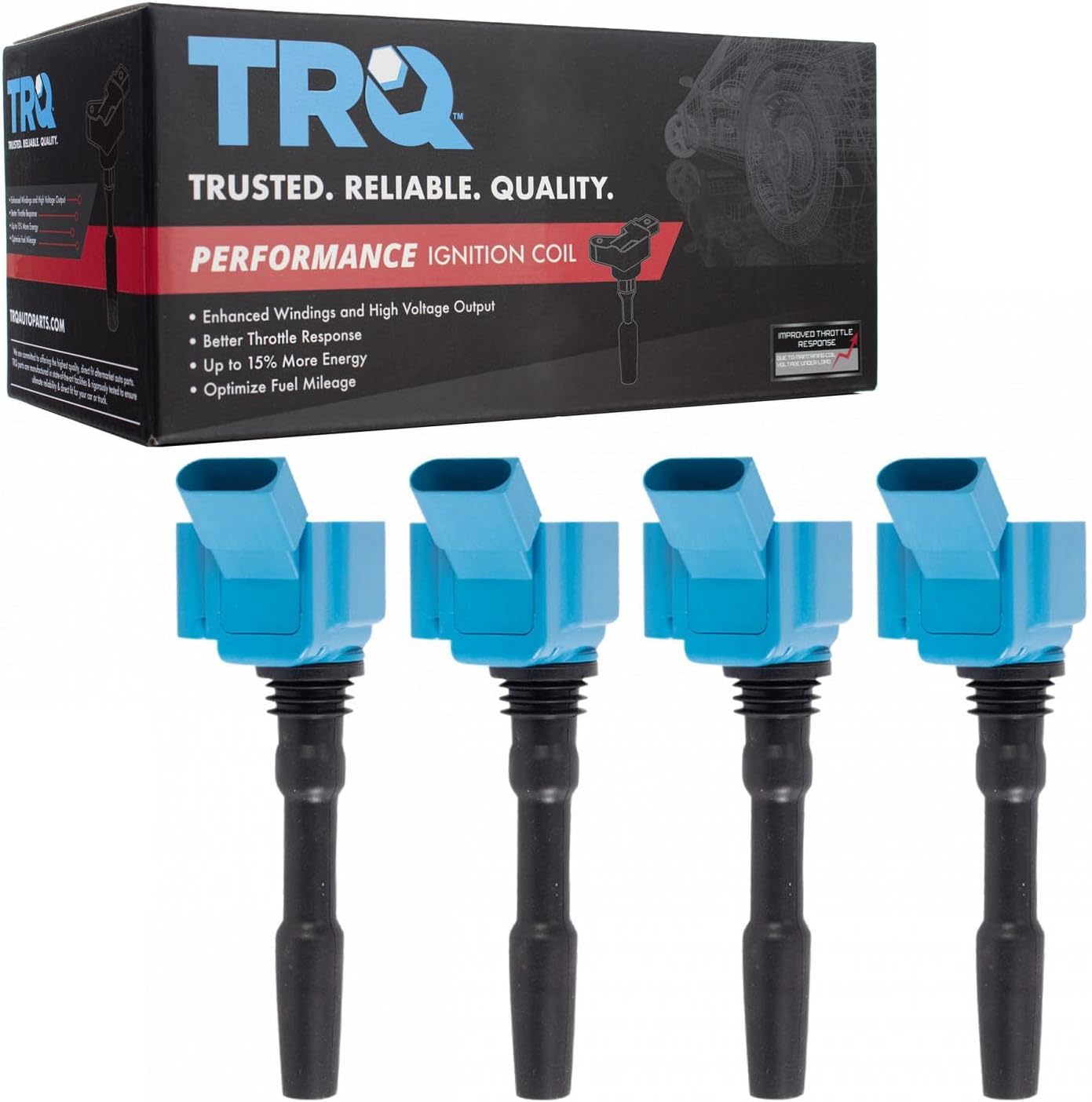 3 Piece Performance Ignition Coil SetKit Includes(3) Performance Ignition CoilsFitmentBuick Century 1986-88 - V6 3.8L 1987-89 - V6 2.8L 1989-93 - V6 3.3L 1994-05 - V6 3.1LBuick Electra 1986-87 - V6 3.8L 1990 - V6 3.8LBuick LaCrosse 2005-09 - V6 3.8LBuick LeSabre 1986 - V6 3.0L 1986-05 - V6 3.8LBuick Lucerne 2006-08 - V6 3.8LBuick Park Avenue 1991-05 - V6 3.8LBuick Reatta 1990-91 - V6 3.8LBuick Regal 1988-89 - V6 2.8L 1989-96 - V6 3.1L 1990-04 - V6 3.8LBuick Rendezvous 2002-05 - V6 3.4LBuick Riviera 1986-87 - V6 3.8L 1991-93 - V6 3.8L 1995-99 - V6 3.8LBuick Skylark 1989-93 - V6 3.3L 1994-98 - V6 3.1LCadillac Cimarron 1987-88 - V6 2.8LChevrolet Beretta 1990-94 - V6 3.1LChevrolet Camaro 1993-95 - V6 3.4L 1995-02 - V6 3.8LChevrolet Cavalier 1987-88 - V6 2.8L 1991-94 - V6 3.1LChevrolet Celebrity 1987-89 - V6 2.8L 1990 - V6 3.1LChevrolet Corsica 1987-89 - V6 2.8L 1990-96 - V6 3.1LChevrolet Impala 2000-05 - V6 3.4L 2000-05 - V6 3.8LChevrolet Lumina 1990-01 - V6 3.1L 1991-97 - V6 3.4L 1998-99 - V6 3.8LChevrolet Lumina APV 1992-95 - V6 3.8L 1996 - V6 3.4LChevrolet Malibu 1997-03 - V6 3.1LChevrolet Monte Carlo 1995-97 - V6 3.4L 1995-99 - V6 3.1L 1998-05 - V6 3.8L 2000-05 - V6 3.4LChevrolet Venture 1997-05 - V6 3.4LHonda Passport 1994-95 - V6 3.2LIsuzu Rodeo 1993-95 - V6 3.2LIsuzu Trooper 1992-95 - V6 3.2LOldsmobile 88 1992-99 - Olds V6 3.8LOldsmobile 98 1986-87 - Olds V6 3.8L 1992-96 - Olds V6 3.8LOldsmobile Achieva 1992-93 - Olds V6 3.3L 1994-98 - Olds V6 3.1LOldsmobile Alero 1999-04 - Olds V6 3.4LOldsmobile Cutlass 1997-99 - Olds V6 3.1LOldsmobile Cutlass Calais 1989-91 - Olds V6 3.3LOldsmobile Cutlass Ciera 1987-88 - Olds V6 2.8L 1987-88 - Olds V6 3.8LOldsmobile Cutlass Cruiser 1987-88 - Olds V6 3.8L 1987-89 - Olds V6 2.8L 1989-93 - Olds V6 3.3L 1994 - Olds V6 3.1LOldsmobile Cutlass Supreme 1988-89 - Olds V6 2.8L 1989-97 - Olds V6 3.1L 1991-96 - Olds V6 3.4LOldsmobile Delta 88 1986-88 - Olds V6 3.8LOldsmobile Intrigue 1998-99 - Olds V6 3.8LOldsmobile LSS 1996-99 - Olds V6 3.8LOldsmobile Regency 1997-98 - Olds V6 3.8LOldsmobile Silhouette 1992-95 - Olds V6 3.8L 1996-04 - Olds V6 3.4LOldsmobile Toronado 1986-87 - Olds V6 3.8L 1991-92 - Olds V6 3.8LPontiac 6000 1987-89 - V6 2.8L 1988-91 - V6 3.1LPontiac Aztek 2001-05 - V6 3.4LPontiac Bonneville 1987-88 - V6 3.8L 1991-95 - V6 3.8L 2003-05 - V6 3.8LPontiac Firebird 1993-95 - V6 3.4L 1995-02 - V6 3.8LPontiac Grand Am 1992-93 - V6 3.3L 1994-98 - V6 3.1L 1999-05 - V6 3.4LPontiac Grand Prix 1988-89 - V6 2.8L 1989-03 - V6 3.1L 1991-96 - V6 3.4L 1997-08 - V6 3.8LPontiac Montana 1999-05 - V6 3.4LPontiac Sunbird 1991-94 - V6 3.1LPontiac Trans Sport 1992-95 - V6 3.8L 1996-98 - V6 3.4LProduct AttributesGrade Type: PerformanceQuantity: 3 PieceIgnition Coil Type: PerformanceIgnition Coil Color: RedProduct Features Enhanced Efficiency: Up to 15% more energy transferred to spark plugs High Temperature Epoxy: Enhanced service life Faster rise times and duration Improved throttle responseItem DetailsTRQ ignition coils will have your engine running like new. TRQ ignition coils are manufactured to precise specifications using premium raw materials to optimize each vehicle's ignition system. To ensure peak performance, TRQ recommends replacing ignition coils in sets to prevent electrical output imbalances. All products are fit and road-tested in our Massachusetts R&D facility to ensure we deliver on our promise of Trusted Reliable Quality.Reference Numbers1103608DR-39DR39
