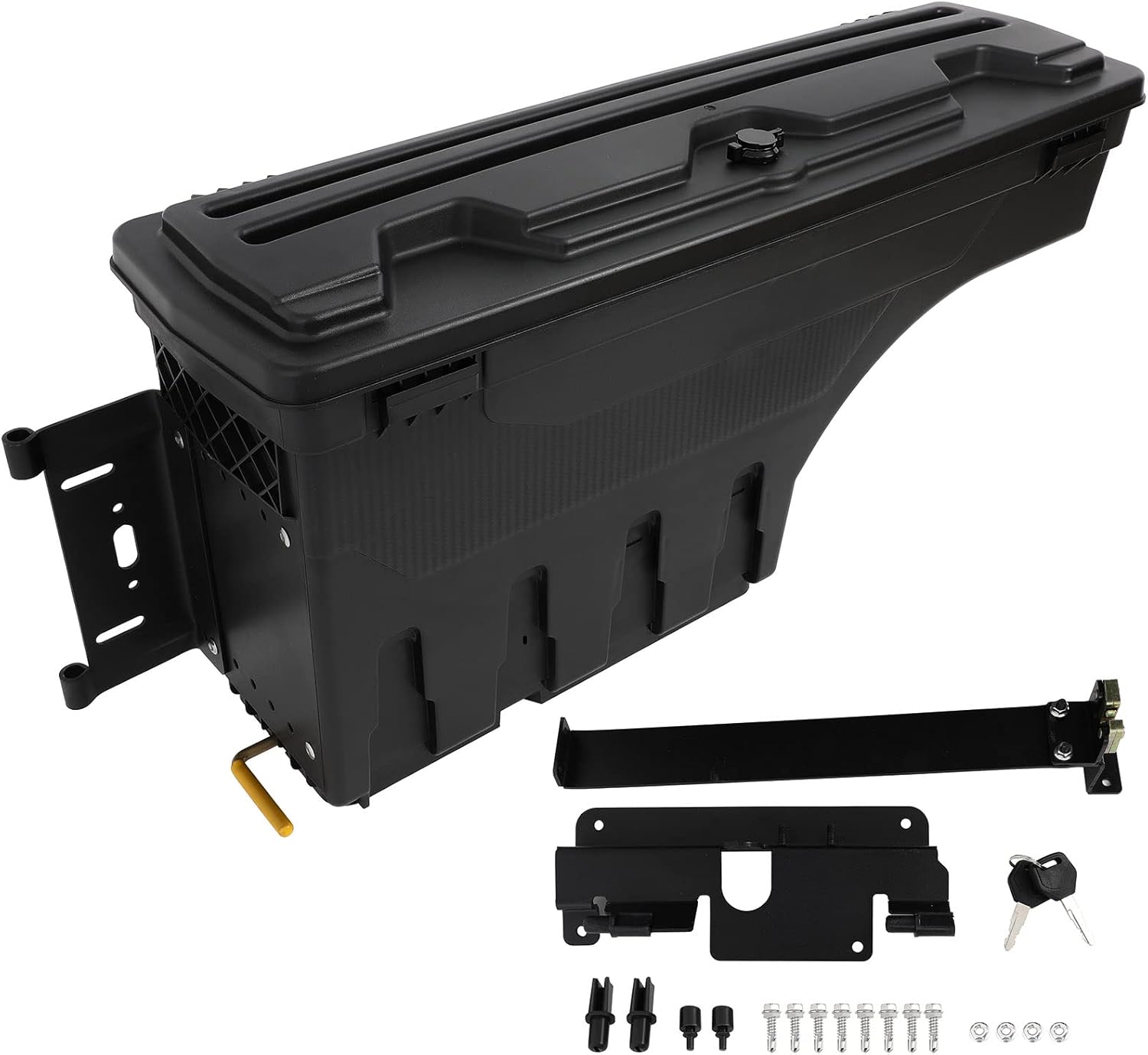 Fitment:For Chevrolet Silverado 1500 2007-2018For Chevrolet Silverado 1500 LD 2019For Chevrolet Silverado 2500 2007-2018For Chevrolet Silverado 2500 HD 2007-2019For GMC Sierra 1500 2007-2018For GMC Sierra 1500 Limited 2019For GMC Sierra 2500 HD 2007-2019For GMC Sierra 3500 HD 2007-2019Innovative & Versatile Truck Storage Box:Our Truck tool storage box is tough and weather proof, just the right thickness to be strong and flexible for a ideal fit. Not only improves the storage space of the vehicle, keeps your items organized, but also enhances the sense of style of the vehicle. Imagine that you can easy to get your gear by simply pulling a release lever without reaching over your truck bed.Package Included:1 xLeft Driver Side and 1 x Right Passenger Side Lockable Tool Case BoxNecessary Accessories