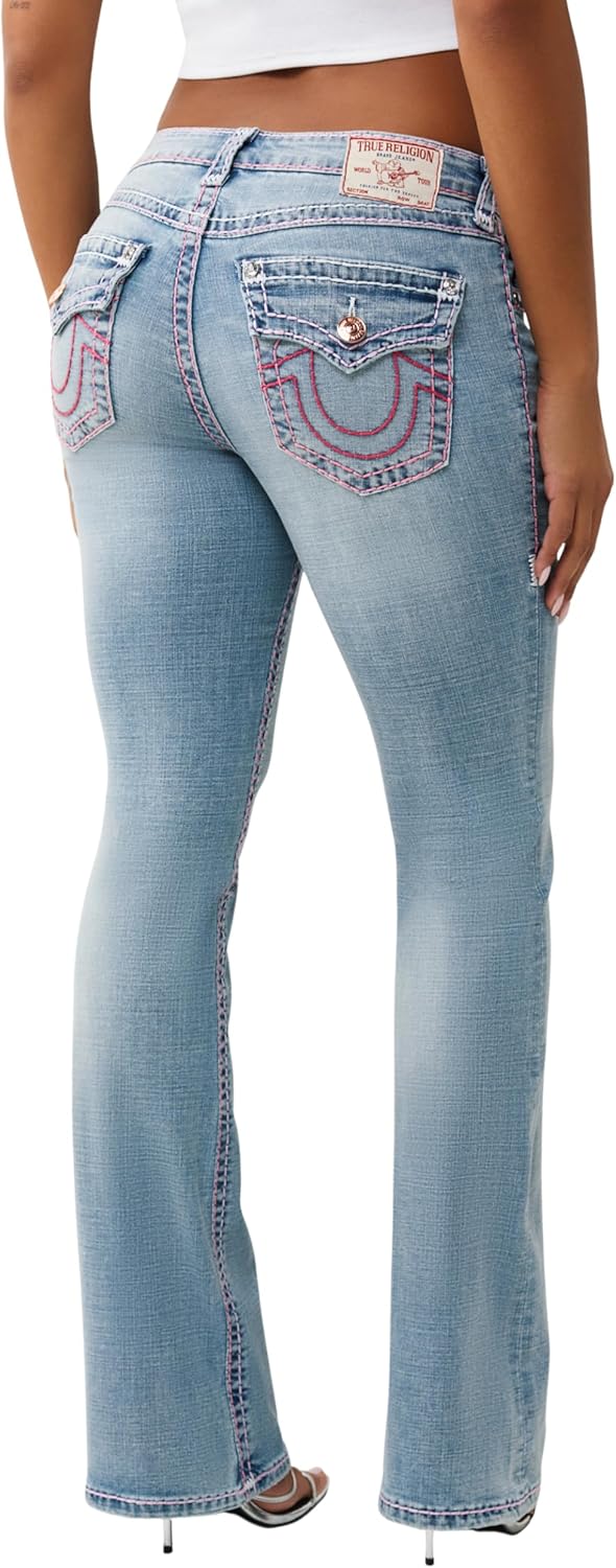The Becca Super T Bootcut Jean brings bold attitude and premium craftsmanship together in a flattering, modern bootcut silhouette. Designed with a mid-rise waist for a comfortable, natural fit, this women’s jean combines flexibility and structure for all-day ease. The soft cotton blend with added stretch moves smoothly while maintaining shape, delivering a curve-enhancing feel that never compromises comfort. Bold red Super T stitching adds unmistakable True Religion identity, while subtle whiskering, clean hardware, and horseshoe detailing on the back flap pockets complete the look with polished, everyday edge. Versatile enough for casual days, weekend plans, or nights out, the Becca Super T Bootcut Jean pairs effortlessly with fitted tops, tees, or sweaters. With its standout details and confident energy, this jean is a must-have addition to any trend-forward wardrobe.