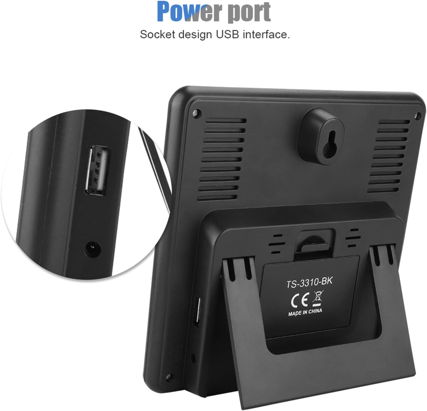 1. Supports display in seven languages: English, Italian, Danish, French, German, Spanish and Dutch. 2. USB interface plug design, power port. 3. Designed with kids screen lock. 4. Full color LCD with weather icons: sunny, partly sunny, cloudy, raining. 5. Excellent quality and durability. Specification: Characteristics: 1. Supports display in seven languages: English, Italian, Danish, French, German, Spanish and Dutch. 2. USB interface plug design, power port. 3. Designed with kids screen lock. 4. Full color LCD with weather icons: sunny, partly sunny, cloudy, raining. 5. Excellent quality and durability. Specs: Material: abs Weight: 384g Size: Approx. 13.5*13.5*3cm/5.31*5.31*1.18inch Outdoor Unit Size: Approx. 3.4*2*9.2cm/1.34*0.79*3.62inch Indoor temperature detection range: 0-+50°C Outdoor temperature detection range: -20-70°C Humidity range: 20%-95% Battery: 2 * AAA (not included) Packing List: 1*Host 1 * External machine 1 * Data line />1 * connection 1 * User Manual