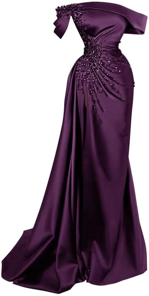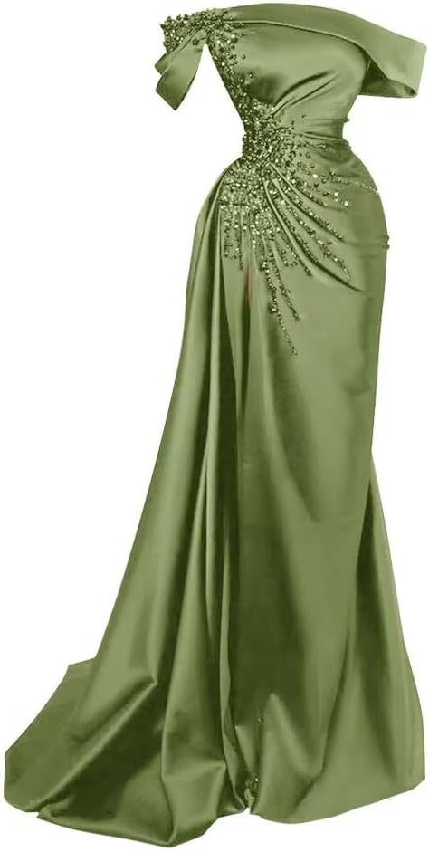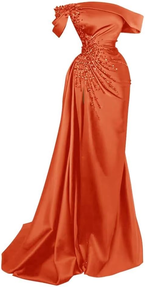 | Embellishment Feature | beads evening dress, high slit bridal dresses, mermaid formal gown, off the shoulder bride gown, satin prom dress |