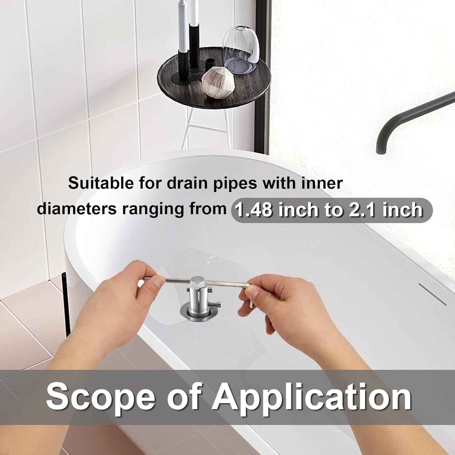 Bathtub drain pipe disassembly tool Made of high-strength 45 steel, it is very sturdy and durable. After quenching and hardening treatment, the toughness and wear resistance of the product are improved, the service life is long, and there is also a rust proof galvanized layer on the surface Compared to the old-fashioned pipe tools that require tapping into the drain for disassembly, our product has a brand new mechanism design. The bathtub wrench is placed in the drain, and the expansion is adjusted to match the diameter of the drainage pipe. Using the lever principle, dismantling and replacing old, rusty, and stubborn bathtub drainage pipes becomes an easy and convenient task If you try to use pointed nose pliers, screwdrivers, or hammers for operation, these tools are prone to slipping and may damage the enamel surface of the bathtub. Improper operation can also cause thread slippage or component breakage. Using our product can help you solve these problems The adjustable working end is compatible with various drainage pipe sizes (1.48 inch to 2.1 inch). Place the disassembly tool into the old bathtub drain pipe, turn the hex screw to adjust the diameter of the drain pipe hole, tighten the screw with a hex wrench, and bite into the drain pipe Insert an Allen wrench into the top circular hole to provide leverage force, making it easier to turn rusty or stuck drainage pipes The kit includes: 1 * bathtub drain remover tool, 1 * hex wrench Reminder: Wear gloves to protect your hands during operation, and place a thick cloth on the surface of the bathtub to prevent tools from slipping and damaging the bathtub