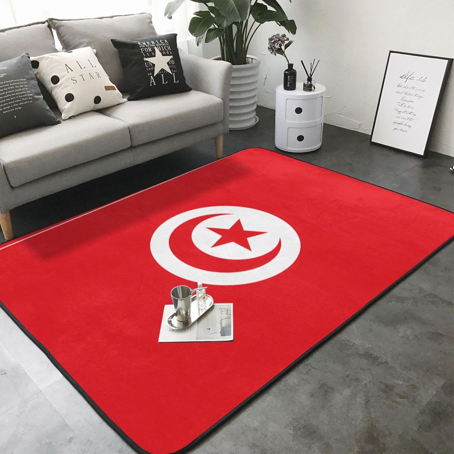 This Tunisian flag printed decorative carpet is made of polyester flannel, which is delicate and soft to the touch, with tight and regular pile. It will not pill or fade after long-term use, and will always look like new. The middle layer uses high-density memory foam, which can automatically adjust according to the foot shape and pressure, providing precise massage for tired feet and relieving fatigue. The bottom is designed with non-slip plastic bottom non-woven fabric, which can firmly grip the ground even when it encounters water or on smooth surfaces, ensuring the safety of the elderly and children. It is easy to clean daily, can be machine washed or hand washed, and is wear-resistant and does not shed. Exquisite stitching technology and high-quality tailoring, with smooth edges, are suitable for a variety of scenes such as bathrooms, living rooms, and bedrooms. Non-slip, comfortable, and durable, adding a touch of intimacy and elegance to your life.