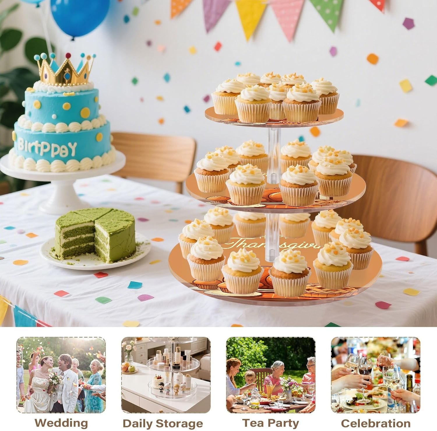 3 tiers round cupcake stand,acrylic cake tower stand holder macaron display rack cookie candy buffet desserts platter with non-slip and stable base for wedding, birthday, theme party. Due to the difference between different monitors,the picture may not reflect the actual color of the item,Please allow the slight color difference! We always doing our best to provide the best service and reliable products for every customer,Thank you very much! Have a good day!