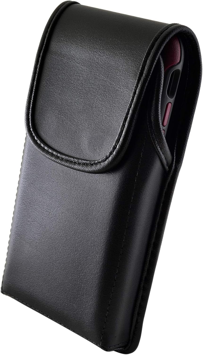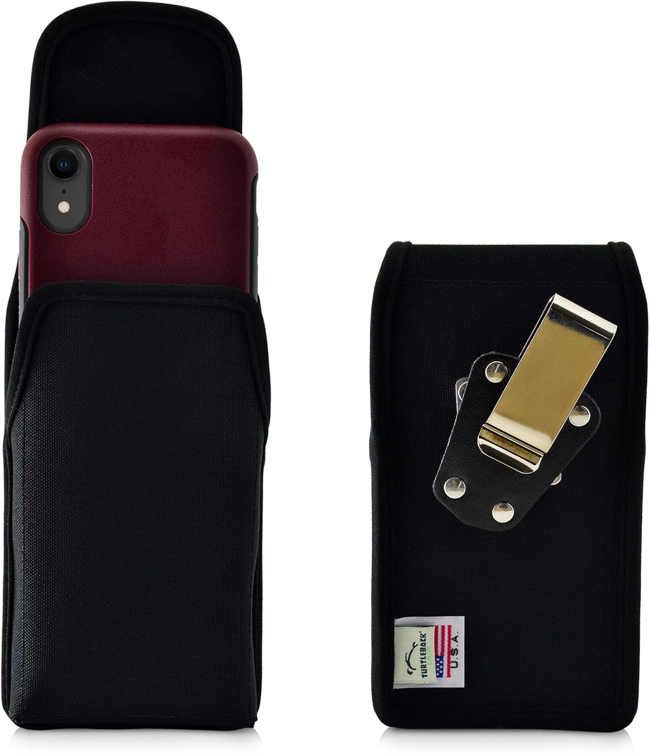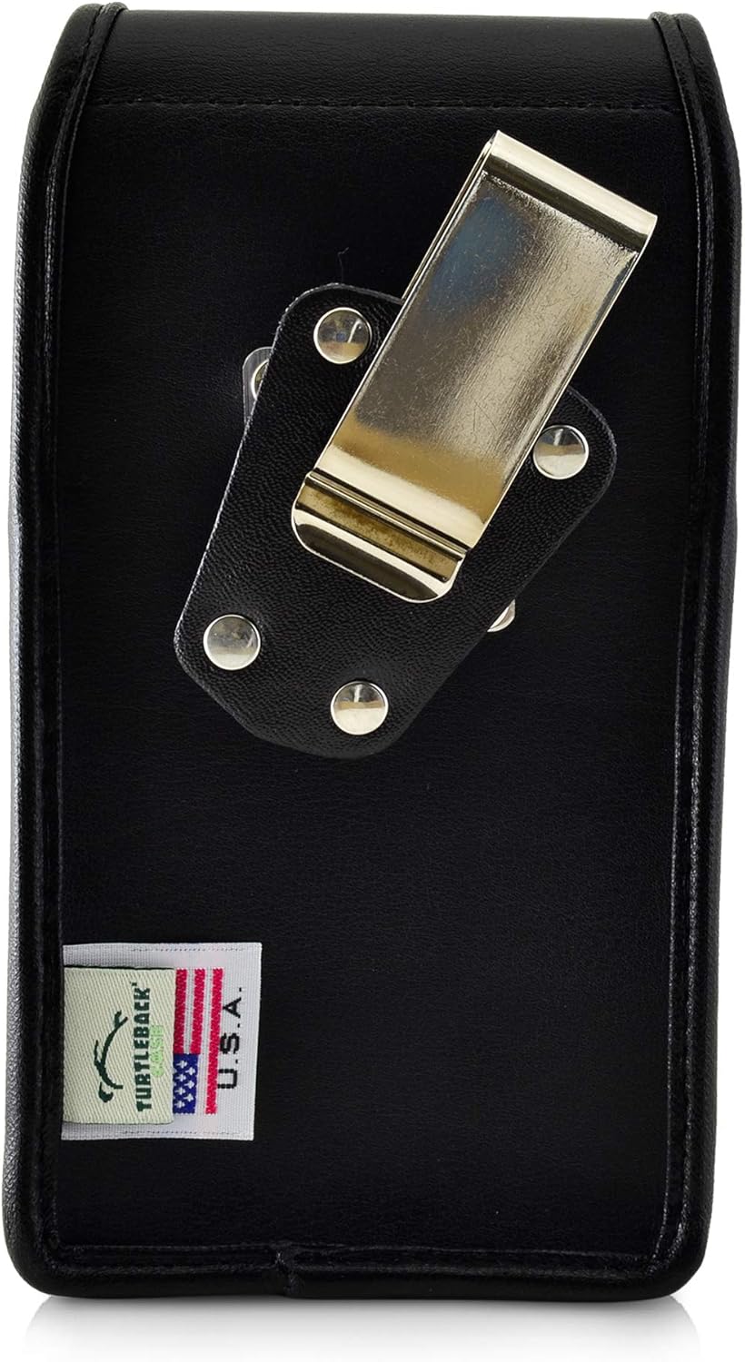 Note: Does not include OB case. Turtleback iPhone 11 & XR. No more fumbling around for your mobile phone in your jacket or bag--with our leather holster, made from premium bonded leather, your mobile phone will be kept safe from damage or theft. Plus, with a rotating, removable metal belt, you can clip your holster anywhere: to your belt, to your bag, even on your vehicle. The ergonomic design of our holster is both aesthetically pleasing and practical, and you'll find our leather holster is so comfortable, you won't even remember you're wearing it! Our vertical leather holster is designed and Assembled in USA, and your satisfaction is guaranteed!