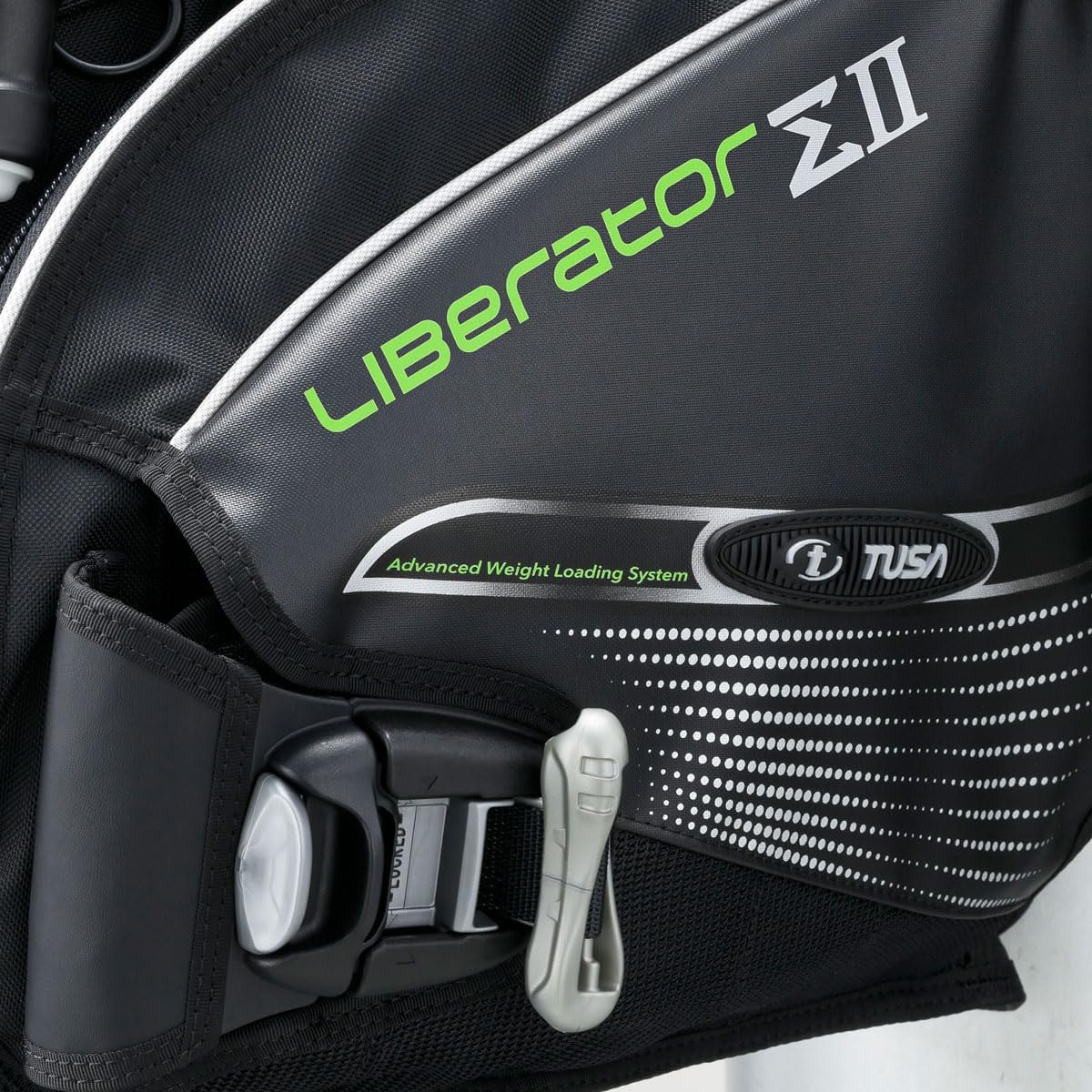 The highly anticipated BC-0101 Liberator Sigma II Buoyancy Compensator is a heavy-duty, wrap-around jacket Style BC that utilizes TUSA's Advanced Weight Loading System and Ultimate Stabilizing Harness, which ensures security and stability. With its two large, double zippered pockets with mesh drainage, you can maximize utility and function. TUSA's Advanced Weight Loading System (AWLS) allows the diver to insert weights into the weight-cartridges and loading them easily into the front of the BC jacket. Additionally, with weight distribution to the shoulder area, the weighted-down feeling that is traditionally associated with weight belts is eliminated. Weight cartridges can accommodate from 8 lbs. (3.63 kg) to 10 lbs. (4.54 kg) of weight in each cartridge and two rear trim pockets can hold up to 4 lbs. (2 kg) in each non-releasable pocket. The AWLS weight cartridges are easy to release in an emergency, but the safety lock makes sure that they do not release accidentally. The key to comfort with the Liberator Sigma II BCD is its Independent Harness System (IHS). The IHS isolates the BC jacket's harness from the air cell, tightly supporting the tank even with changes in air cell inflation/deflation. The IHS prevents tank slippage and eliminates any gaps between the tank and your back. The Liberator Sigma II BCD uses TUSA's next generation IHS featuring an Integrated-Carry-Handle, additional adjustability to dial in a perfect fit and a neutrally buoyant construction allowing the diver to shed the lead removing approximately 2 lbs. (1 kg) of lead from their system. TUSA's Ultimate Stabilizing Harness (USH) completely-eliminates tank roll and delivers an amazing fit. The USH securely holds the air cylinder in place with optimally placed rails and brings the tank closer to the body increasing tank control while reducing weight. The RITETITE buckle is a 2-position cam strap for quick and easy adjustment. While the strap is being looped through the buckle, the buckle stays in place without needing to be held. This allows for more control and stability. This feature is part of all TUSA BCJ's. The BCD has an adjustable sternum strap for maximum comfort. The W.S.S. integrates the adjustable shoulder harness system with the rear stabilizing plate and cummerbund to effectively unload the hips while ensuring a snug fit. BCD is made from durable 500-Cordura nylon with an internal urethane laminated air cell. BCD has, 2-large zippered pockets for storage of accessories. Torso adjustable shoulder straps provide excellent comfort and adjustable waist strap with cummerbund provides precise adjustment of harness. All straps are equipped with squeeze-style" side-release buckles for easy donning and doffing. Buoyancy is controlled by TUSA's patented O.P.E.V. Quick inflate/Deflate System. Trimming buoyancy is easy with 2-dump/overpressure relief valves. BCD provides 18 lbs. to 46 lbs. (8.16 kg to 20.9 kg) of lift depending on the BCD size. Accessory attachment is made easy with 1-stainless-steel D-ring and 4-resin D-rings. BCD comes with an owner's manual and a 3/8" threaded low-pressure (LP) hose.