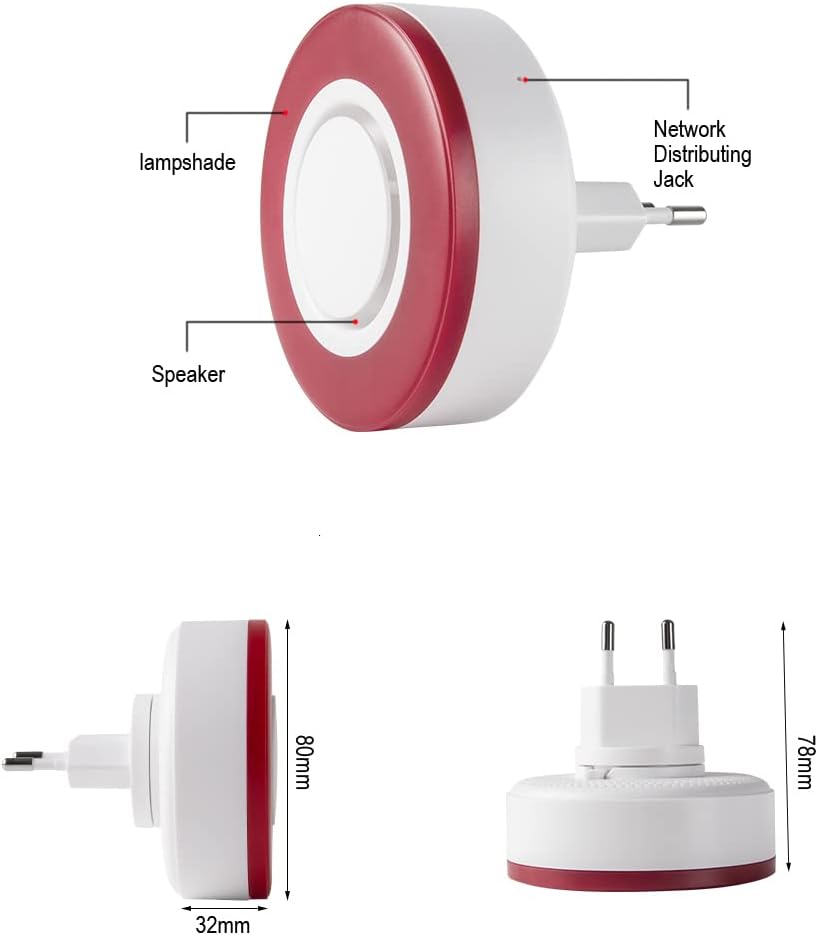 Name: Smart Indoor Light Siren Model:HS1WD-E Work valtage: 100-240V power adaptor Standby Battery:DC 4.2V Lithium battery,700mAh Sound:95dB 1m Alarm Tone:Ordinary single-tone alarm Work Current:<300mA Static current:<20mA (depend on module) Work method: Buzzer+LED/Buzzer/LED Alarm time:Can be set on APP and gateway Battery standy time:12 hours after cut AC power RF protocol: Zigbee 3.0 standard profile Signal repeater: outdoor receive distance 100m, outdoor transmit distance 100m LED lampshade: Transparent, Red or Blue LED flash: Red