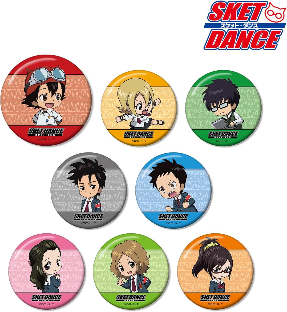 Introducing a trading tin badge from the TV anime "SKET DANCE". The main design includes a Boston, Cimeko, Switch, Teriro Amkashi, Sasuke Camellia, Mimori Tanyu, Harababa Doryu, Sha Hinama, Kikuno Chibi Karai Last Put it on your bag or small items, hang it up in your room, or enjoy your daily life with your characters.