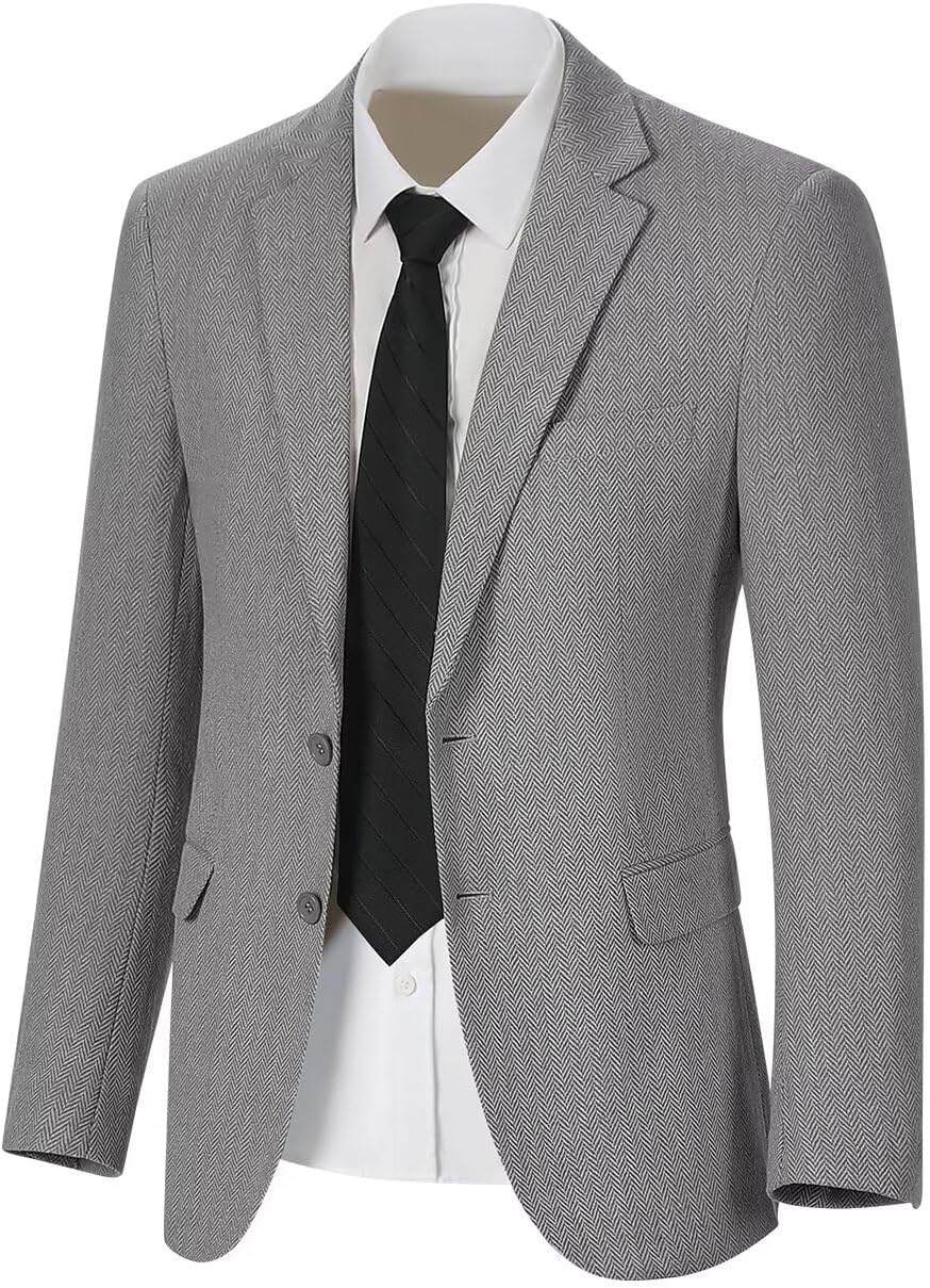 Notifications Please choose right size according to our size chart. Brand:FxzpiodiFabric:80% Polyester,20% ViscoseFit:Slim fitElasticity:No elasticityThickness:ModerateSize:X-Small,Small,Medium,Large,X-large,XX-Large,XXX-Large. Occasion:The Herringbone men suit jacket is a classic style in men's wardrobe, ideal for business,dances, banquets, weddings,magic shows, music bands,Halloween, Christmas Eve, prom, party, disco, nightclub,dinner, graduation, ceremony, dating, meeting, stage performance, festival, new year,This suit jacket is good choice for your Father,Brother,Boyfriend or Friends. The Tweed Suit blazer featured with Polyester fabric, gives you more noble disposition. Single-breasted two button closure, notched lapel perfectly present your gentility. A fit tuxedo show your styles and can suit many occasions, is both fashionable and versatile. Match with a white dress shirt, a pair of leather shoes and your suit pants plus a tie to help improve your public image.