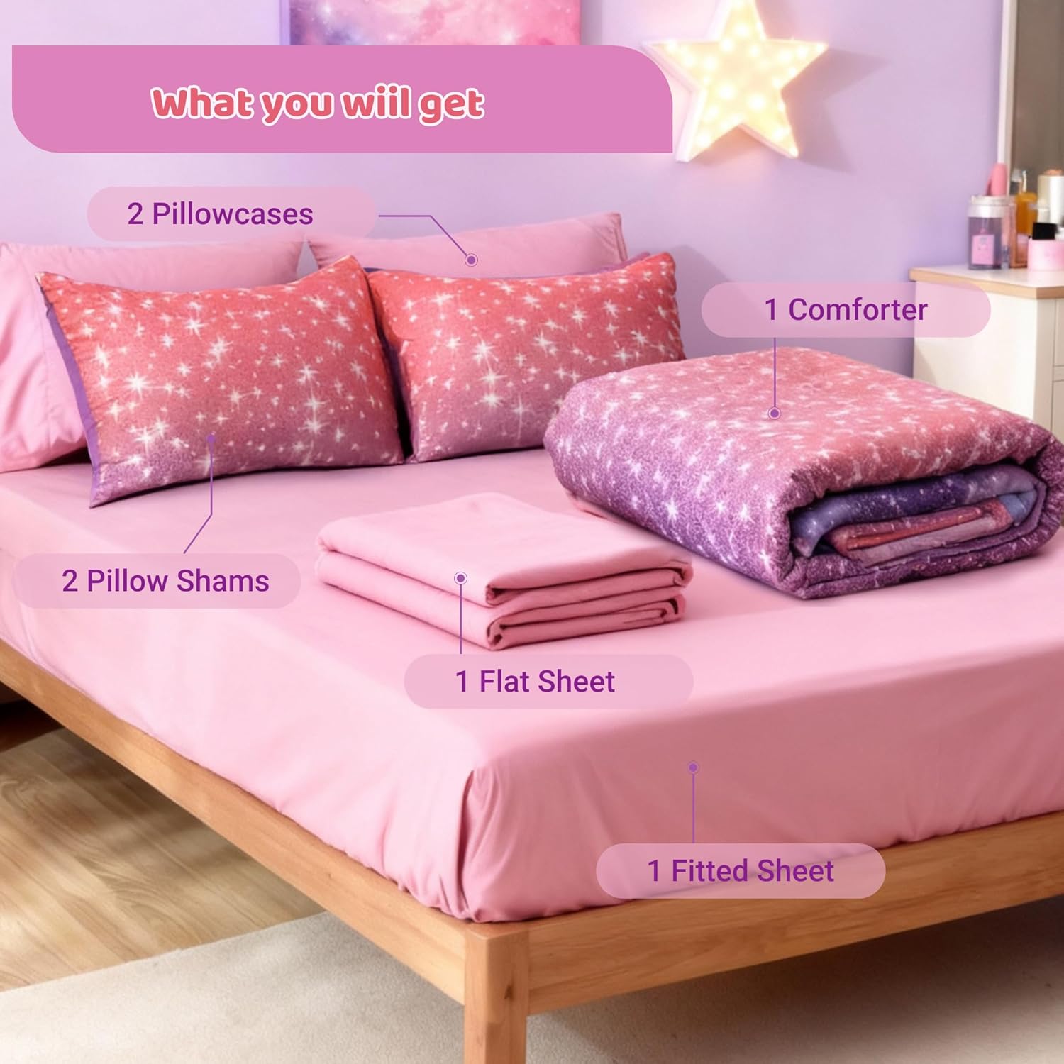 | Included Components | 1 comforter, 1 sham, 1 pillowcase, 1 flat sheet, 1 fitted sheet |