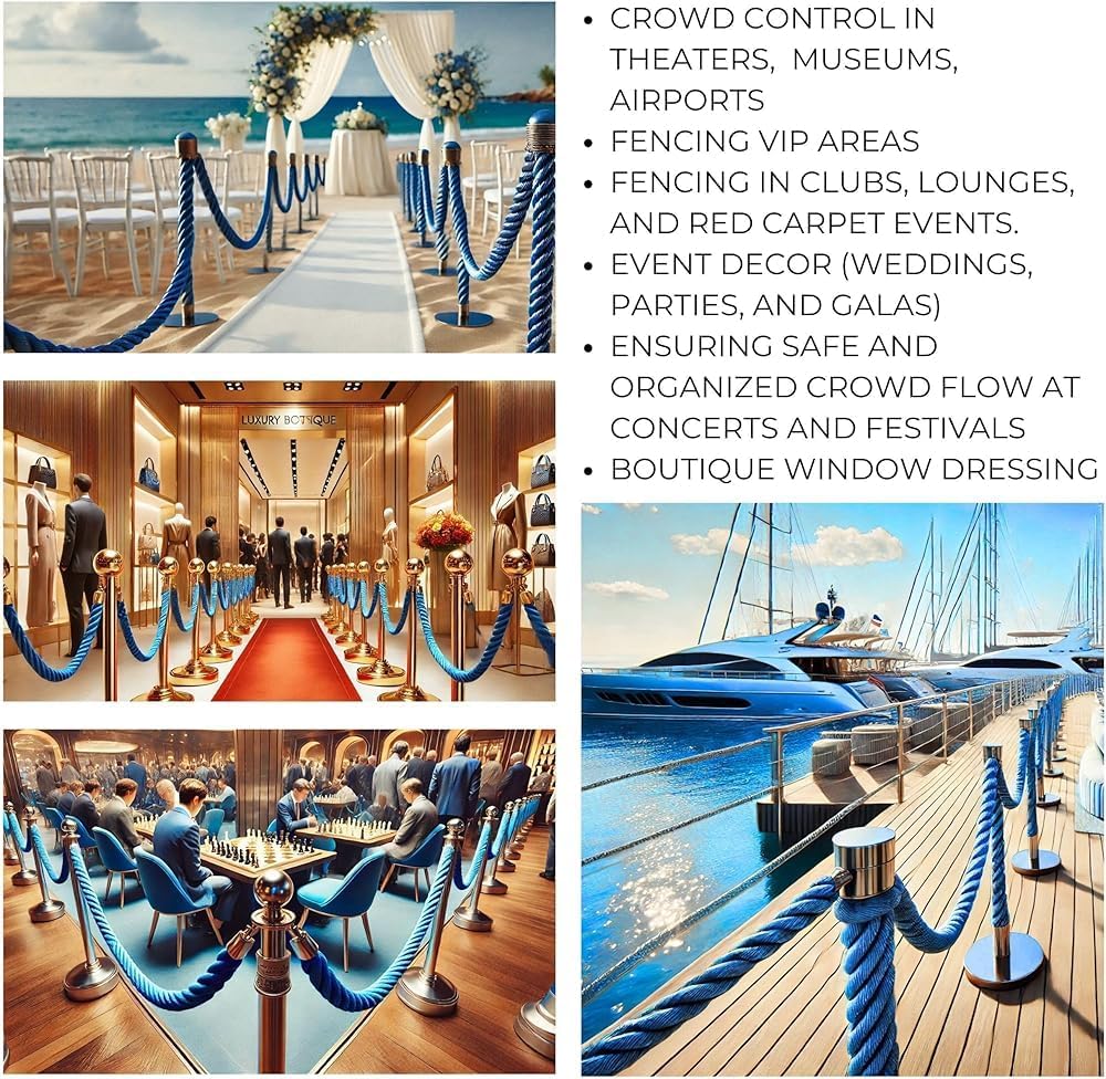Pillar ropes are essential for enhancing crowd management at various events and venues. Our Twisted Pillar Rope, equipped with durable snap hooks, is perfect for establishing barriers and guiding queues in hotels, restaurants, banks, and both indoor and outdoor public spaces, ensuring efficient crowd control while adding an elegant touch.The Twisted Pillar Rope is available in multiple lengths—2ft, 3ft, 4ft, 5ft, 6ft, 7ft, and 8ft—allowing you to customize your setup based on the specific needs of your event. The vibrant blue color adds a sophisticated flair, making it ideal for a variety of occasions such as parties, red carpet events, grand openings, weddings, museums, and exhibitions.Included in your purchase is one high-quality Twisted Pillar Rope. Please note that decorative items shown in the images are not included. Additionally, the actual color of the product may vary slightly from what is displayed, ensuring a unique touch to your event setup.Elevate your crowd management experience with our Twisted Pillar Rope, designed to blend functionality with style, making it a valuable addition to any event planning toolkit.