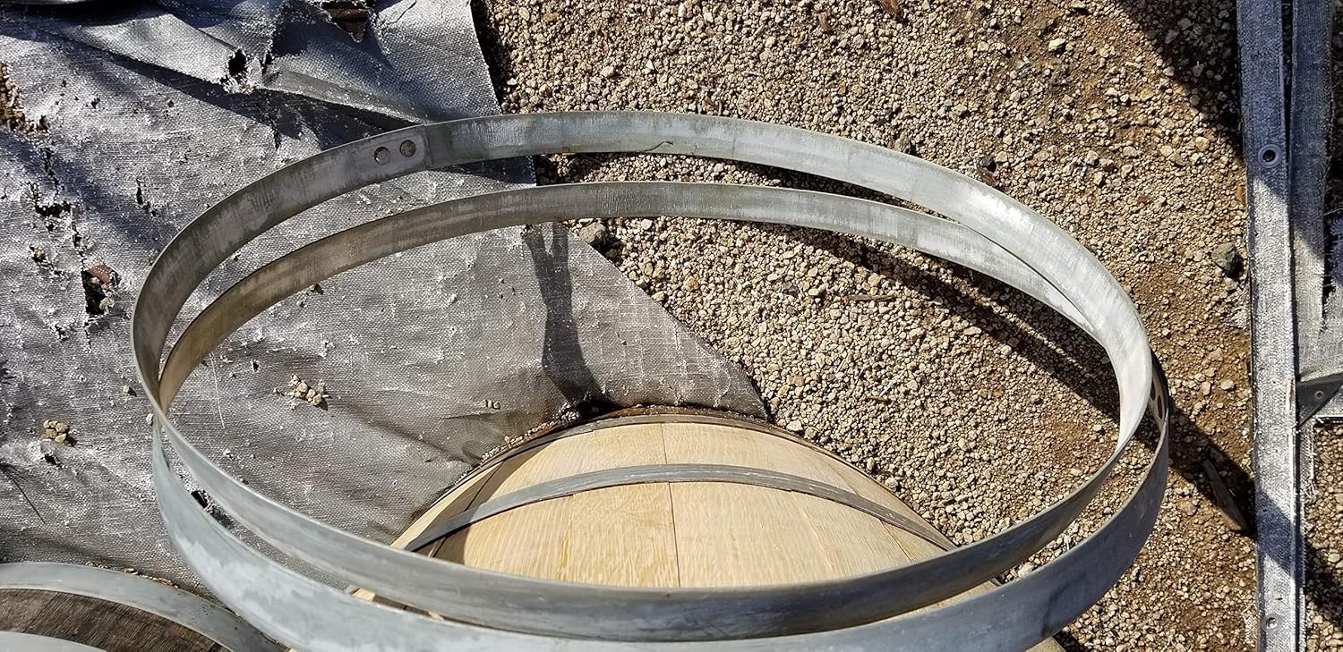 These unique wine barrel hoop bands can be used for arts and crafts projects. This set includes two used wine barrel hoop bands from California wine country. The bands measure between 23" and 27" in diameter and are approximately 1-2 inches wide. Made from galvanized steel, these rustic hoops feature varying patinas as each barrel is unique. Note that actual bands received may vary in appearance from examples shown.