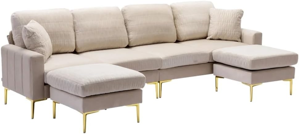 This U-shape sectional sofa needs to be assembled,instructions manual and tool includedModular Sectional Sofa U Shaped sectional with Ottomans, Reversible Sofa Couch for Living RoomSpacious Furniture, CouchSturdy solid wood frame, filled with high-density sponge, making this modular sectional sofa beautiful and comfort, it can be perfectly matched with your apartment, house or conference room.Our modular sectional sofa is based on a solid hardwood frame with memory foam cushions built into the fabric, solid black legs perfectly support the entire sofa and can be used for long timeThis sofa is U-shaped modular sofas, Each seat can be removed.The cushion cover is made of soft and fabric that is easy to clean. Feet material IRON FEETUpholstery Material VelvetFrame Material PlywoodSeat Fill Material FoamPackage Includes:1 xSofa(no other presentation items included).Notice:1. Due to manual measurement, please allow 2-3% error, before you bid, please make sure you don't mind.2. The color may vary due to different displays, please refer to the actual product.2. Due to the manual measurement, please allow a 1-3 cm difference......