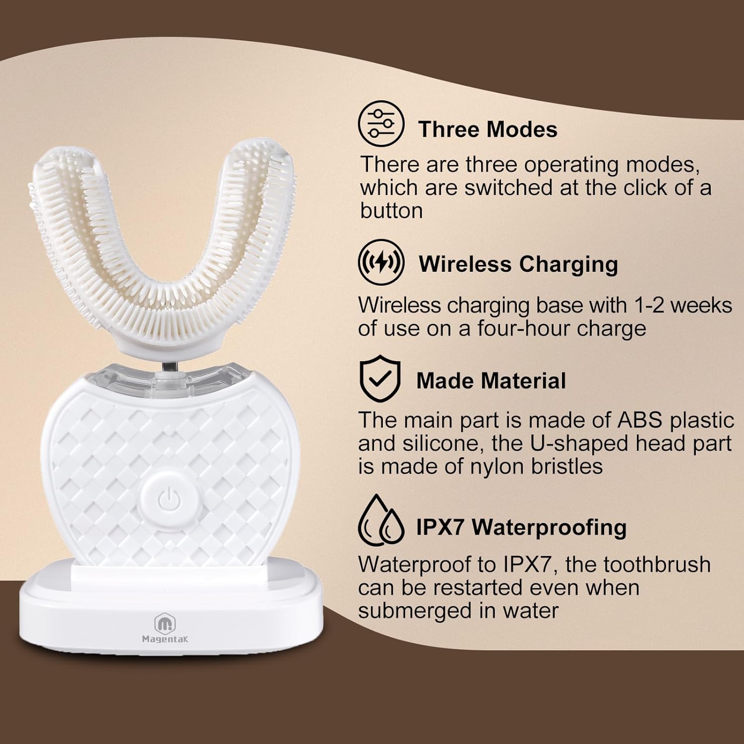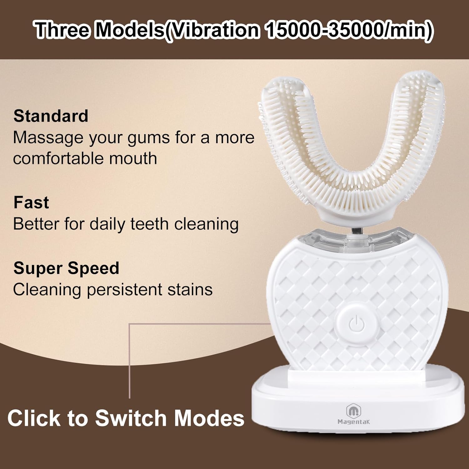 Magentak U-Shaped Ultrasonic Toothbrush with 2 Replacement Head for Teeth Whitening, Automatic Electric Toothbrush for Adults 360-degree Cleaning