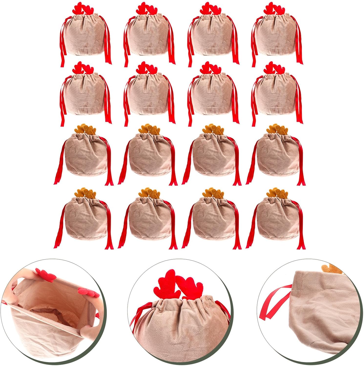 Package Include 20 x candy bags Features -Product Info:Antler Bag -Color:Light Brown -Material:Lint -Size: 13.00X13.00X15.00cm;/5.11X5.11X5.89in; - Festive and classic Christmas themed design, can be used for Christmas party favor bag, Xmas treat bag, add warm atmosphere party favor bags. - Feature the Christmas festival themed printing, which makes your wrapping more delicate candy bag. - This Christmas wrapping bag has reasonable design, delicate workmanship, reusable and excellent small bags. - Widely used, can pack more things. Suitable for party packaging candy, small , cards, drawstring design, safe and reliable candy bags. - It's versatile, it can be great candy bag or small packaging bag for the Xmas festival drawstring bags.Goods Descriptionparty candy bags The Christmas antler design bag is perfect for candy and wrapping use, fill with festival , candy, fill with your unique small .candy bags for party favors No stress or worrying to pack your .drawstring bags They will make your interesting and delicate! Selected material ensures the practicality
