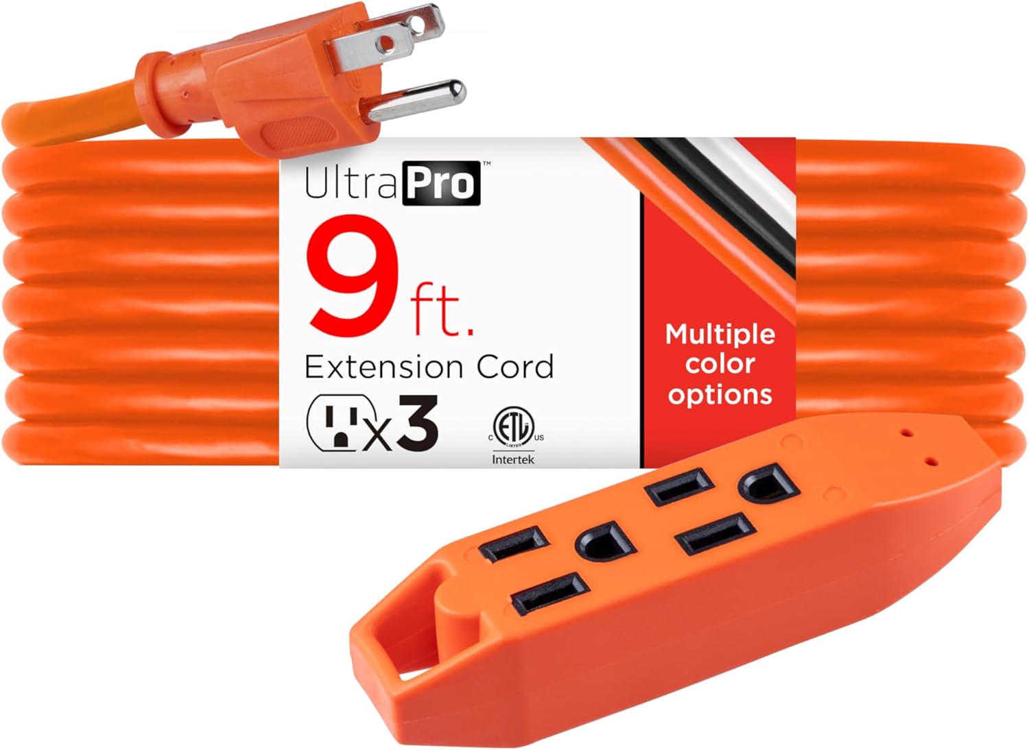 Go the distance with the UltraPro 3-Outlet Indoor/Outdoor Extension Cord. Featuring three grounded, three-prong outlets, the heavy-duty extension cord triples the output of any grounded AC outlet and is rated for indoor and outdoor use. The black extension cord powers your electronics, tools, appliances, outdoor décor and more. Whether you’re using it as indoor extension cords in your home, garage, workshop or office, or an outdoor extension cord for lawn equipment, seasonal décor and more, the extra-long 25ft. range makes extending the reach of your outlet effortless. The heavy-duty extension cord is constructed of 16-gauge cable housed in a durable PVC insulation and jacket that make it strong enough to last a lifetime but pliable enough to fully extend with ease. The one-piece molded plug ensures a snug fit, and a rugged exterior is built to last. The black finish of the durable extension cord blends in with existing cables and electronics. For the ultimate extension cord, look no further than the UltraPro Indoor/Outdoor 3-Outlet Extension Cord.