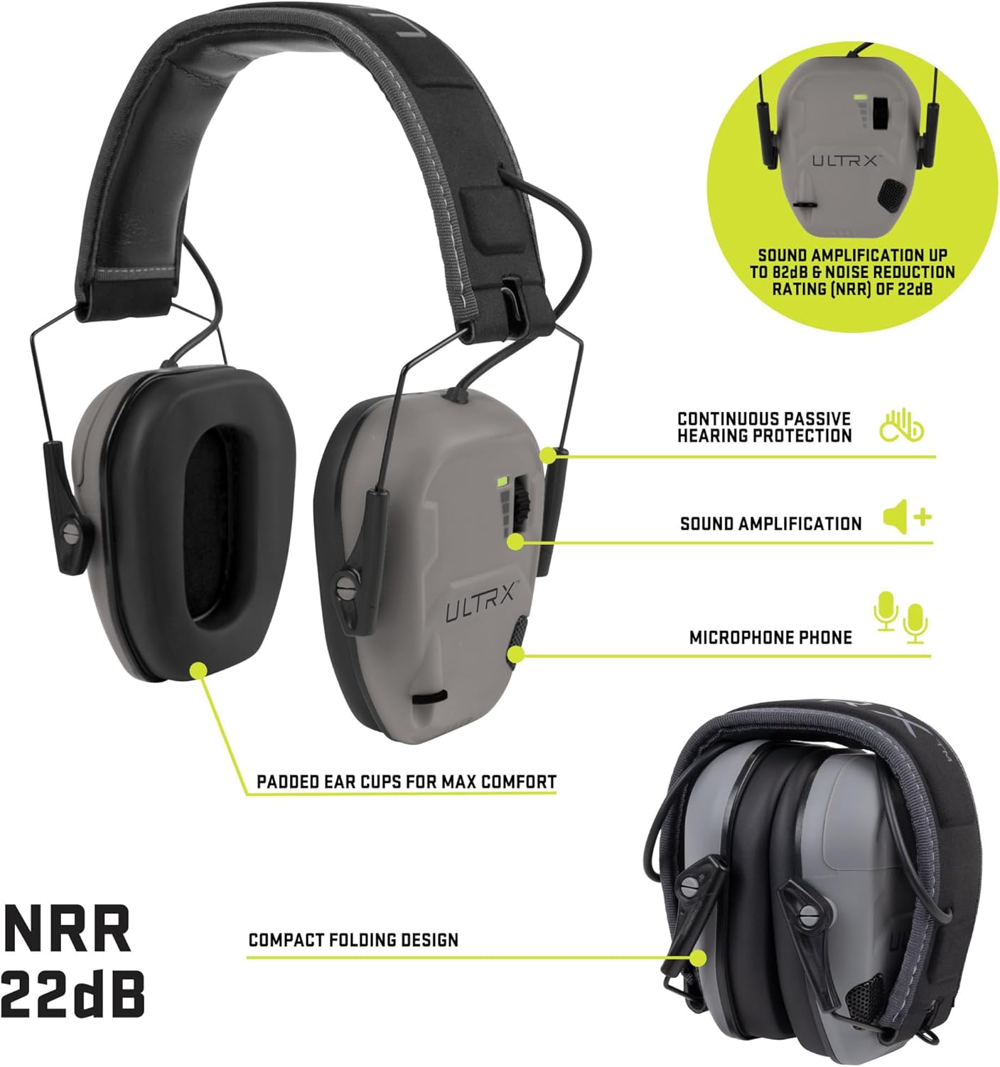ULTRX Bionic Earmuff - Ear Safety - Hearing Protection and Noise Reduction