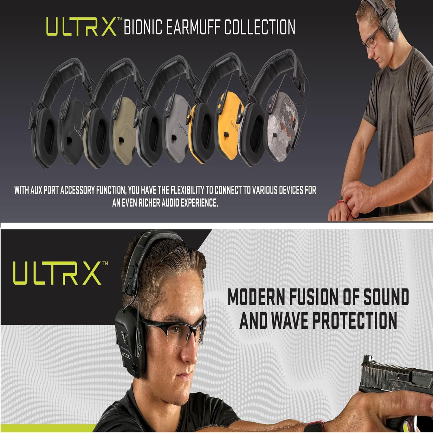 • ULTRX: Experience a modern sound and wave protection fusion with a redefined audio experience. Our ear protection products perfectly blend top-notch sound, comfort, and safety.