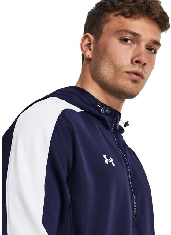 Embrace the elements in style and comfort with the Under Armour Men's Storm Armour Fleece Hoodie. This isn't just another piece of apparel, it's your shield against the weather, your cozy companion on chilly mornings, and your ideal workout partner when the temperature drops. Constructed from Armour Fleece, this hoodie is lightweight yet incredibly warm, making it perfect for those colder days. It's designed with just the right amount of stretch to allow you full range of motion, so you can go about your day or push through your workout without any restrictions. But what sets this hoodie apart is the UA Storm technology. This innovative feature makes the hoodie water-repellent, keeping you dry during those unexpected rain showers. But don't worry, this doesn't compromise on breathability. The hoodie allows adequate air flow, so you stay comfortable even when you're breaking a sweat. Inside, a soft layer traps heat to keep you warm, while the bungee adjust hood provides extra protection against the elements. The generous ½ zip front design makes for easy layering, and secure zip hand pockets provide a safe spot for your essentials. This hoodie boasts a loose, fuller cut for complete comfort, allowing you to move freely and comfortably. It's not just about performance, though. This Under Armour hoodie is also about style. With its sleek design and high-quality construction, it's a hoodie you'd be proud to wear. This hoodie is made from 100% polyester, a durable and resistant material that can withstand regular use and washing. Speaking of washing, care for this hoodie is a breeze. Simply machine wash cold with like colors, tumble dry low, and avoid using bleach, softeners, or dry cleaning. So, whether you're heading out for a run, hitting the gym, or just running errands around town, the Under Armour Men's Storm Armour Fleece Hoodie has got you covered. It's more than just a hoodie; it's a testament to quality, performance, and style.
