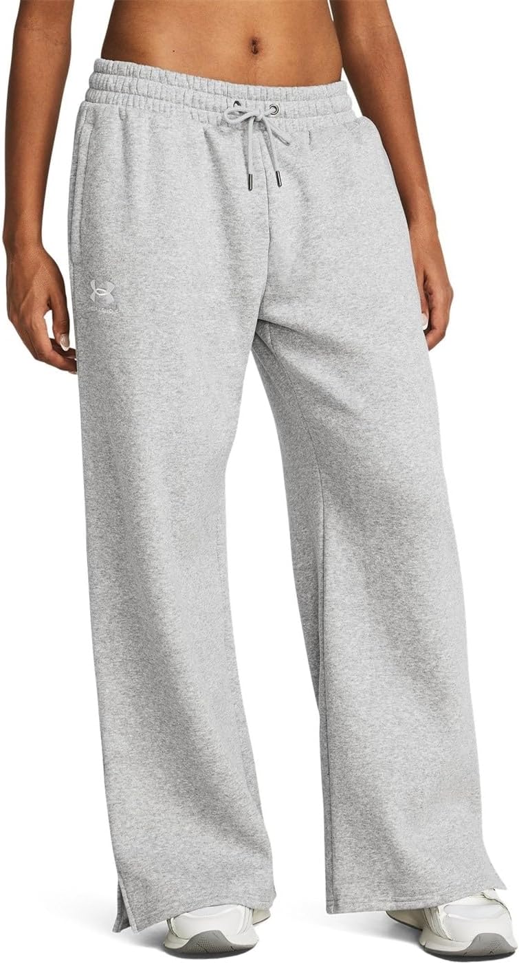 Experience unparalleled comfort and style with Under Armour Women's Icon Fleece Wide Leg Pants. These pants are a game-changer, combining the nostalgic feel of old school fleece with a modern, oversized cut that is just as perfect for your workout routine as it is for a casual day out. Constructed from an ultra-soft, mid-weight cotton-blend fleece, these wide leg pants offer an extraordinary level of comfort and warmth. The brushed interior adds an extra layer of coziness, making them an ideal choice for colder seasons or post-workout cool-downs. Under Armour's commitment to quality and functionality can be seen in the practical features of these Icon Fleece Wide Leg Pants. The encased elastic waistband, coupled with an external drawcord, ensures a secure yet comfy fit, providing optimal flexibility during your workouts or daily activities. The pants also feature open hand pockets, a convenience often overlooked in women's apparel, allowing you to carry essentials with ease. The wide leg fit with a flare bottom adds a trendy twist to the classic sweatpants silhouette, giving these pants a versatile appeal that goes beyond the gym. These loose-fit pants, designed with a fuller cut, offer complete comfort without compromising on style. The product style number is 1386497, and the inseam measures 29.125". Made from a blend of 80% cotton and 20% polyester, these pants balance durability and softness perfectly. Caring for these pants is a breeze. Simply machine wash them cold with like colors. Avoid bleaching, ironing, and dry cleaning to maintain their quality and appearance. Also, it's best not to use softeners and to tumble dry on low heat. In a nutshell, the Under Armour Women's Icon Fleece Wide Leg Pants redefine comfort and style. Whether you're an athlete, a fitness enthusiast, or simply a lover of cozy, stylish clothes, these pants are a must-have addition to your wardrobe.