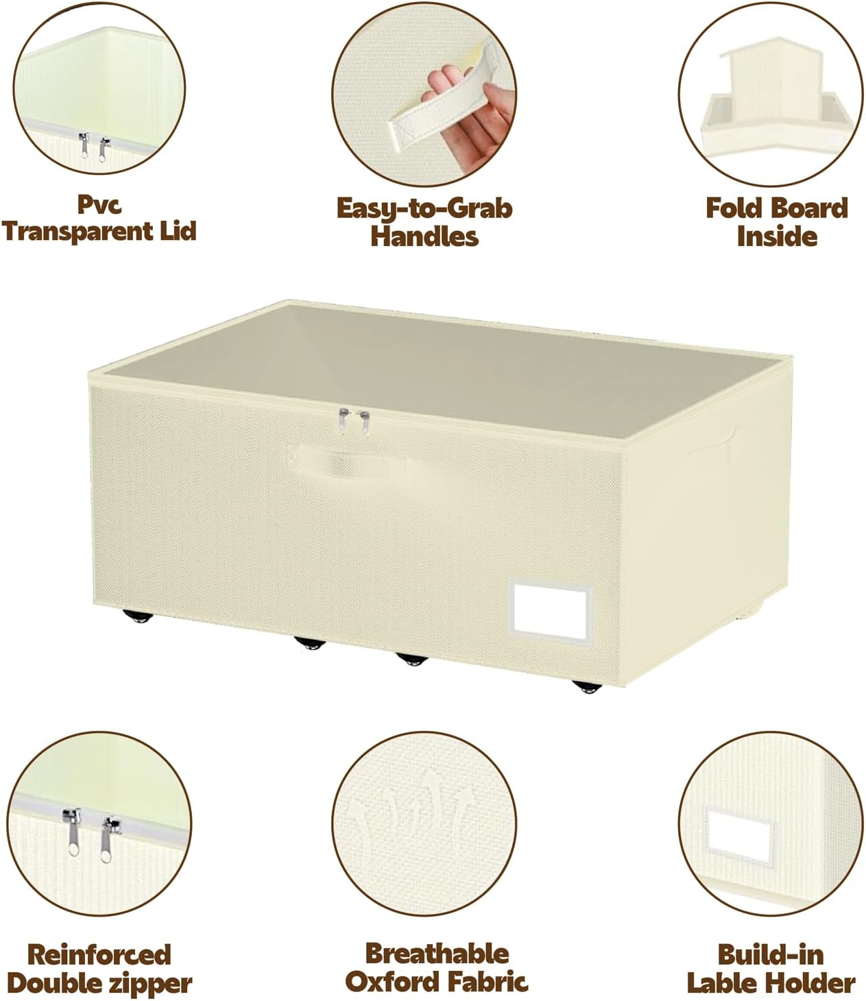 • 【Label & Clear Lid Design】Our rolling under the bed storage drawers are equipped with transparent lid Windows & Label design, without having to open multiple containers or boxes, that make it easy to quickly identify the contents of your locker. The double-zipper closure and quality materials ensure long-lasting protection.