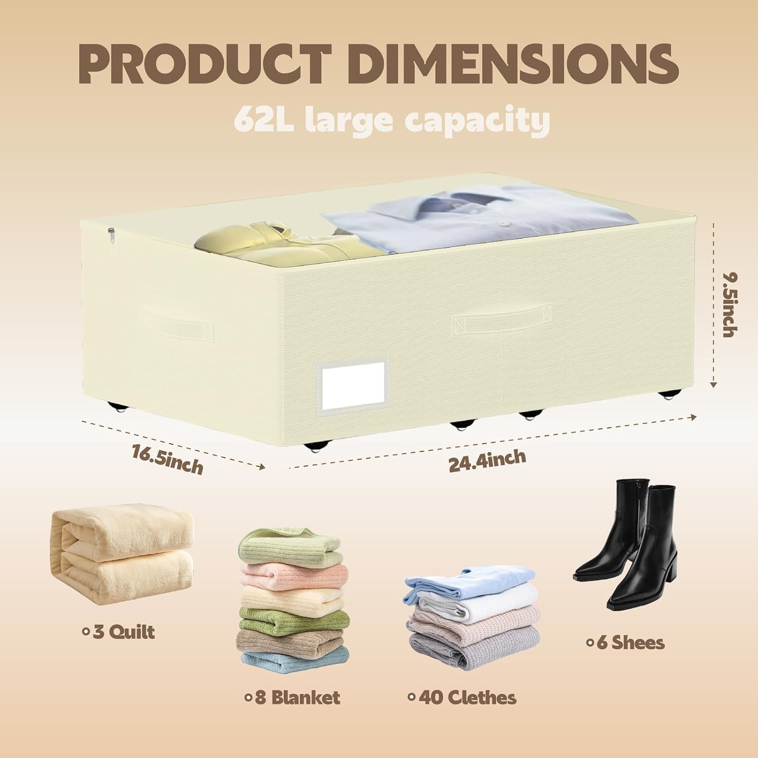 • 【Tough Build and Strong】Durable oxford fabric and each pack uses 8 ball wheels, the bottom bracket is reinforced with hard wood, providing superior support compared to other elastic band structures, our underbed storage is built to withstand more heavy loads while keeping them in their original condition for ideal long-term storage and durability.