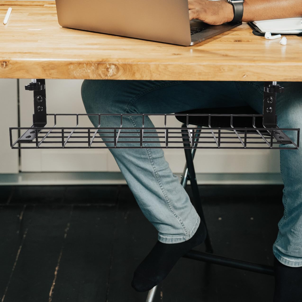 Package Include 1 x Cable Management Tray Features -Product Info:Wire storage rack - Color: Black - Material: Steel - Size: 50.00X19.50X19.00cm/19.65X7.66X7.47in - Note: Adjustable, suitable for tables with thickness of 1-5cm desk cable management tray - Very practical and premium, compact size and light weight, saving space, install under the desk. - The design of the rack is firm and durable, has a good load-bearing capacity, and is not easy to fall off under desk cord organizer. - Can collect your cables and wires together in a , create a tidy room no drill cable management under desk. - Great for storing most of the cables, such as computer wire, socket, charger wire, keyboard wire, etc wire organizer under desk. - The storage rack allows the wires under the desktop to be neatly arranged and easy to take appliance cord organizer.Goods Descriptioncord organizer storage It works perfectly installed underneath a desk.cord organizers The wire cable organizer is the perfect solution to organize and clean up those messy cables mount under your desk! It is large enough to hold most protectors and power strips.cable management under desk tray Made of , durable for use