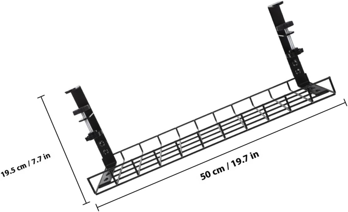 Package List 1 x Cable Management Tray Features - Color: Black - Note: Adjustable, suitable for tables with thickness of 1-5cm cable organizer for desk -Product Info:Wire storage rack - Size: 50.00X19.50X19.00cm/19.65X7.66X7.47in - Material: Steel - The product installation is simple and convenient, smoothly polished, and the service life is long wire management under desk. - Simple and sturdy in structure, practical and convenient, help in organizing the cables and wires wire organizer under desk. - Has of space to meet your cable storage needs, creative mesh design cord keepers for cables. - Can keep your power strips, USB hub cables, and adapters tidy and order cord management kit. - Great organizing tool for bedroom, living room, study room, office, computer room, etc cord storage.Goods Informationunder desk cord management The ingenious design makes it steady, not easy to deform, providing you an invisible cable rack for organizing the wires, easy to install it under the table, suitable for most of the occasions.cord organizer desk Are you still worried about there is no appropriate storage rack to hold your cables? Our product will solve your problem