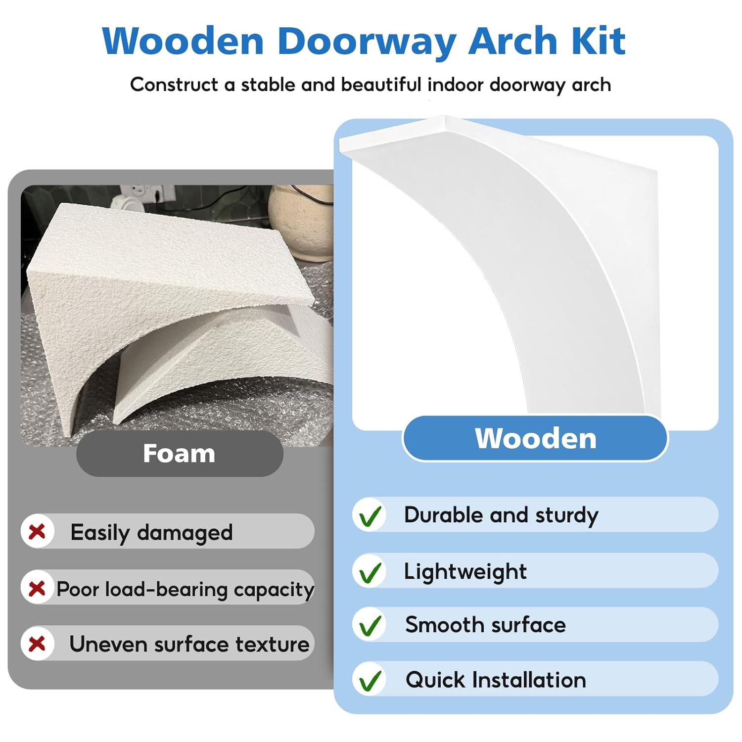 Features:This 2-pack universal wooden circular arch kit features a triangular seamless-fit design and paintable finish to match any decor. Lighter than gypsum alternatives, it enables easy DIY installation by 1-2 people with structural adhesive or screws—no gap-filling or sanding needed. Durable wood resists chipping/cracking from daily collisions, suits high-traffic areas like doorways/hallways, and allows flexible repositioning for future decor updates. Create stylish rounded corners effortlessly without precision tools Specifications:Material: woodenColor: white Size:8.5x8.5x5IN Package includes:2 x Doorway Arch Kit