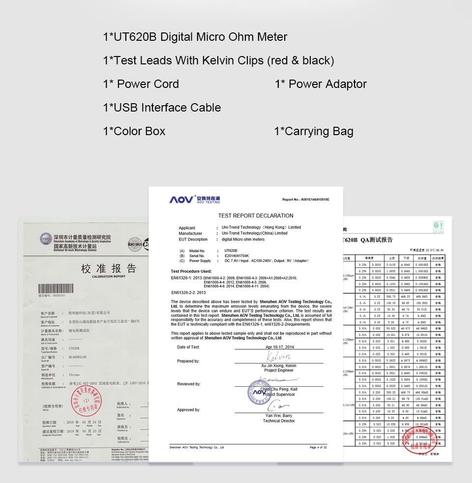 | Included Components | UT620B Resistance Tester , Kelvin clip cable (red and black),Original standard |
