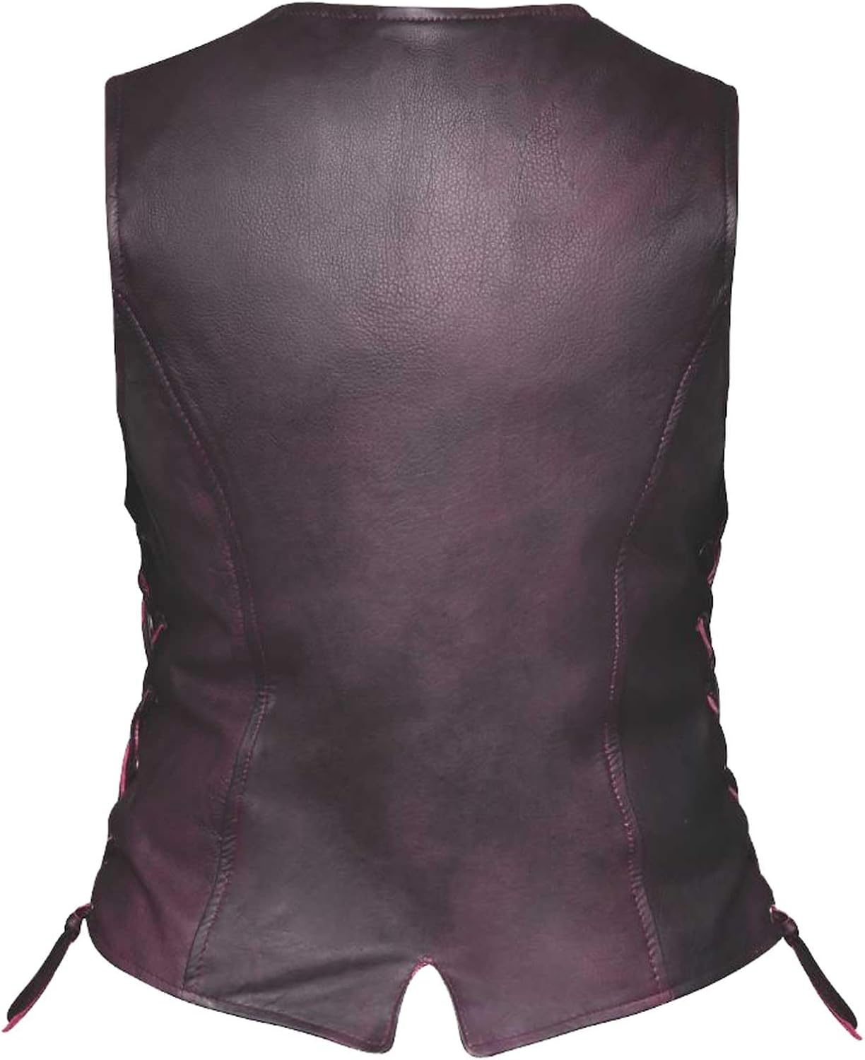 The Style # 6897.17 embodies enduring elegance and practicality, offering a ladies' premium traditional vest meticulously crafted from sumptuous lambskin leather. Its classic design boasts a one-panel back and adjustable side laces, delivering both style and adaptability in a captivating purple shade. This traditional vest is tailored for women who value refined craftsmanship and practical sophistication. Crafted from premium lambskin leather in a daring purple hue, it features: