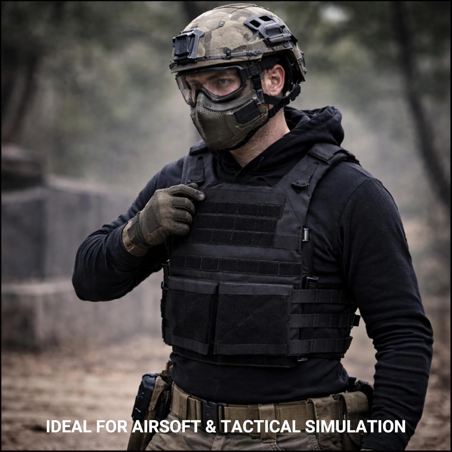 The UniPro VE-99 Tactical Vest is a lightweight, modular plate carrier designed for versatility and durability in demanding situations. Constructed from rugged 500D nylon, this tactical vest delivers outstanding strength while maintaining a comfortable, flexible fit. The quick-release system allows for rapid removal when needed, making it ideal for dynamic activities. Featuring extensive MOLLE webbing throughout the front and sides, the VE-99 provides countless attachment points for magazine pouches, utility panels, communication devices, and other essential gear. The rear zipper interface enables seamless integration with hydration packs or additional storage solutions. With adjustable shoulder straps and side panels, this carrier accommodates a wide range of body types and can be customized for optimal comfort during extended wear. Whether you're participating in airsoft competitions, tactical training exercises, cosplay events, or film production, the UniPro VE-99 offers the reliability and adaptability you need. Its modular design ensures you can configure your loadout exactly as required for any mission or activity.