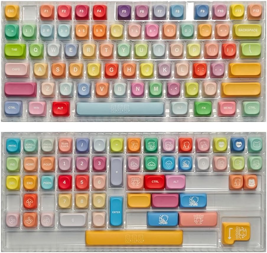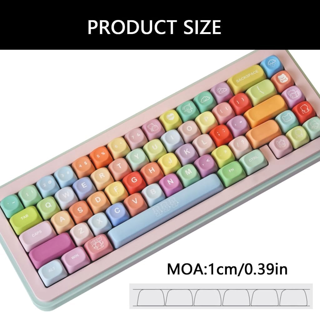 Features: Dyes sublimateds PBT keycaps with five sideds printing ensures long color retention and resistance to wear, for MX switches mechanical gaming keyboards. MOA profile features precise lasers cut edges and textured surfaces for ergonomic comfort, enhanceds gaming accuracy, and compatibility with most mechanical keyboards. for gamers and mechanical keyboards enthusiasts personalizeds setups with colorful professional durability. Elevateds your typing experience in home offices, gaming stations, or creative workspaces with theseoil resistant keycaps optimized for extended use. Customizes your keyboards aesthetic while maintaining functionality, the crisp stay sharply through gaming or daily productivity tasks. Specifications: Materials: PBT Keycap height: MOA Number of key: 132Key Craft: Five-sideds sublimations Note: Please allow 0-1cm error due to manual measurement. make sure you not mind before bid. Due to the differences between different monitors, the picture may not reflect the actual of the item. Thank you! Package includes: 1set PBT Keycaps