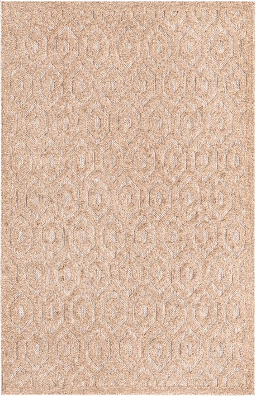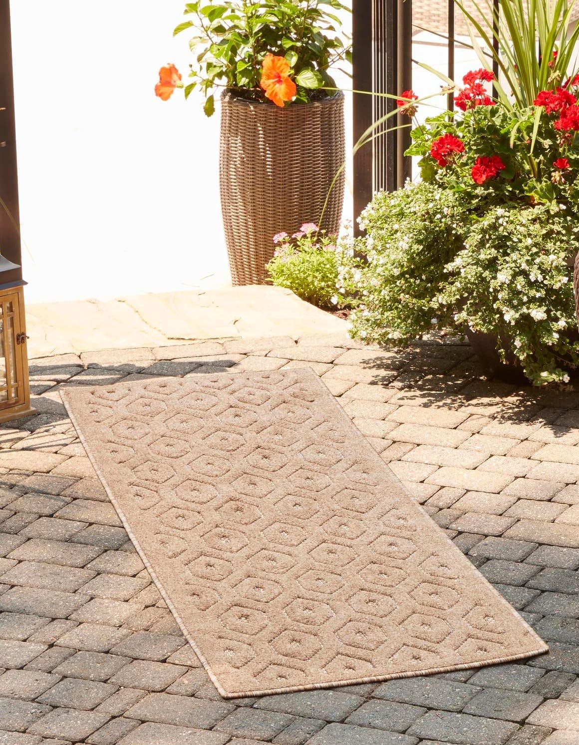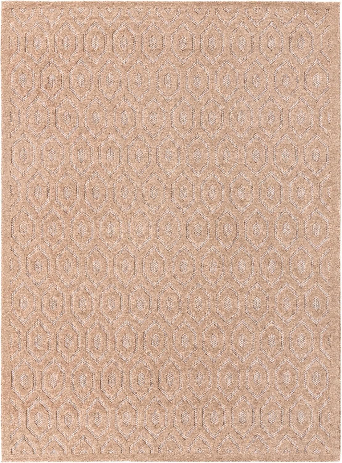 Visual interest doesn't always require graphics and illustrations. Sometimes an understated pattern is all it takes to bring a room to life. The Outdoor Trellis Textured Collection follows this philosophy, with subtle geometric patterns and muted coloration that creates a lavish display. Thanks to a unique high/low pile, this outdoor rug collection creates a multidimensional feel. A combination of cut pile and flat weave technique from its machine woven power loomed construction gives a three-dimensional impression, with plenty of visual appeal while remaining subtle and low-key. Enjoy this unique look in a variety of shades from deep greens, browns and blues to light pink, ivory, and tan. Perfectly constructed for outdoor spaces, from decks and patios to poolside, its polypropylene material is built to be durable to the elements. Because of it's low-maintenance construction, this collection is worry-free for both indoor and outdoor placement. It also boasts ease of care qualities like being both kid-friendly and stain-resistant.
