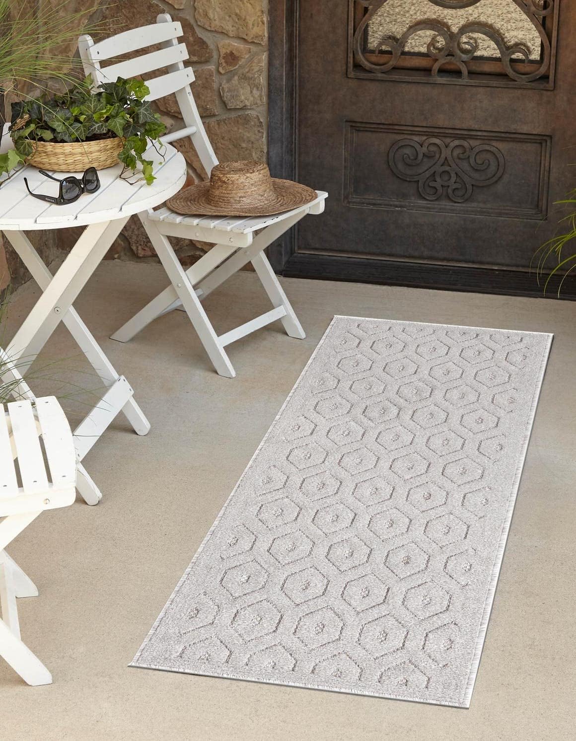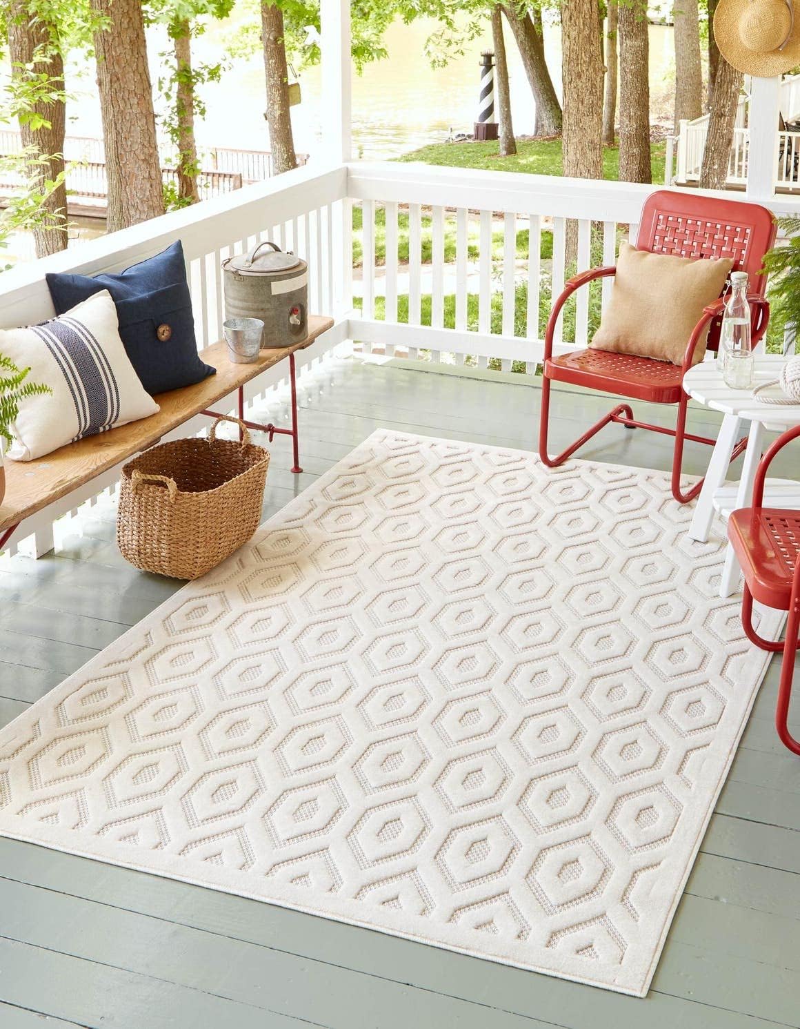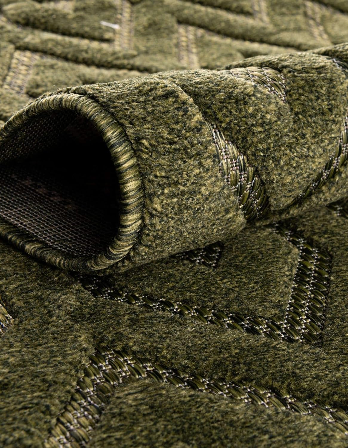 Visual interest doesn't always require graphics and illustrations. Sometimes an understated pattern is all it takes to bring a room to life. The Outdoor Trellis Textured Collection follows this philosophy, with subtle geometric patterns and muted coloration that creates a lavish display. Thanks to a unique high/low pile, this outdoor rug collection creates a multidimensional feel. A combination of cut pile and flat weave technique from its machine woven power loomed construction gives a three-dimensional impression, with plenty of visual appeal while remaining subtle and low-key. Enjoy this unique look in a variety of shades from deep greens, browns and blues to light pink, ivory, and tan. Perfectly constructed for outdoor spaces, from decks and patios to poolside, its polypropylene material is built to be durable to the elements. Because of it's low-maintenance construction, this collection is worry-free for both indoor and outdoor placement. It also boasts ease of care qualities like being both kid-friendly and stain-resistant.