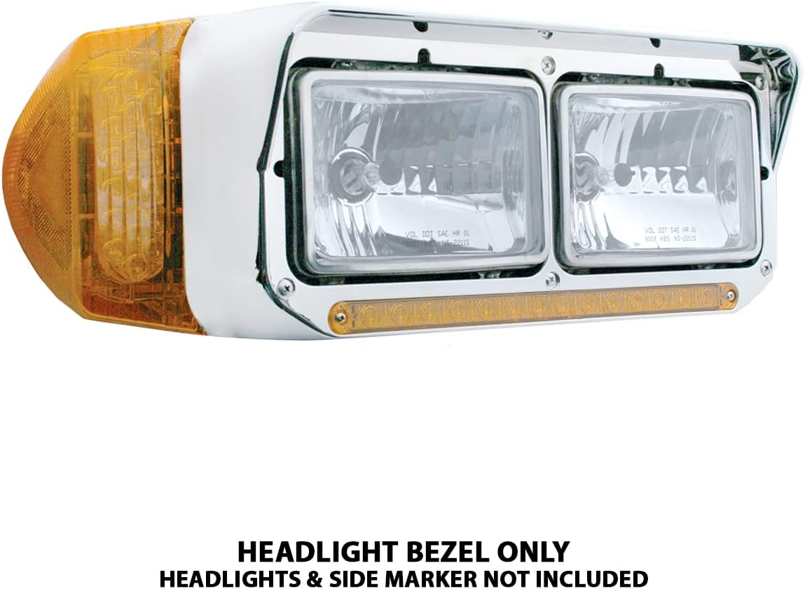 United Pacific 32351 Chrome Rectangular 14 LED Dual Headlight Bezel w/Visor, Chrome Plated, Injection Molded Plastic, LED Light Bar Pre-Installed – Amber LED/Amber Lens – ONE Bezel
