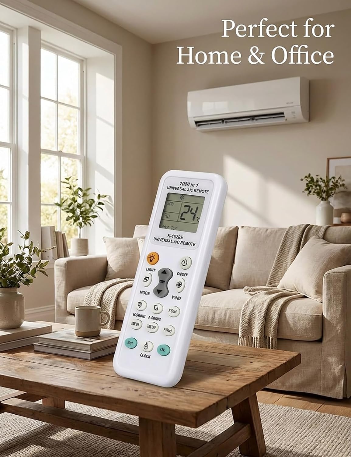 This Universal AC Remote Control is the perfect replacement for your lost, broken, or worn-out air conditioner remote. Designed to work with 99% of major AC brands, it offers wide compatibility with mini split, window, wall-mounted, portable, and central air conditioning units. Featuring an easy auto code search function, setup takes only seconds—no complicated programming or technical knowledge required. It supports all standard air conditioner functions including temperature control, fan speed adjustment, timer, sleep mode, energy saving, air swing, and power on/off. The ergonomic, lightweight design ensures comfortable handling, while durable buttons provide long-lasting performance. specification: Control distance: 10 meters Power type: DC 3V Product size: 13 X 5 X 2.1 cm / 5.1 X 1.97 X 0.82 inches Power supply: 2 X 1.5V AAA batteries (not included) how to use: Easy pairing with air conditioners in less than a minute. Step 1: Point the remote control at the air conditioner and press and hold the "SET" button for 3 seconds until the code flashes in the lower right corner of the LCD screen of the remote control; Step 2: Press the "SET" button again to start the automatic code search procedure. You can see the code change automatically on the LCD screen. (To adjust the code manually, just press the temperature "UP" or "DOWN" button); Step 3: Until you hear a “beep” sound from the air conditioner, it means that the codes match, then press the “OK” button, and the pairing is successful! Note: Air conditioners may have multiple supported codes. In this case, you can try the above procedure again to enter the correct code.