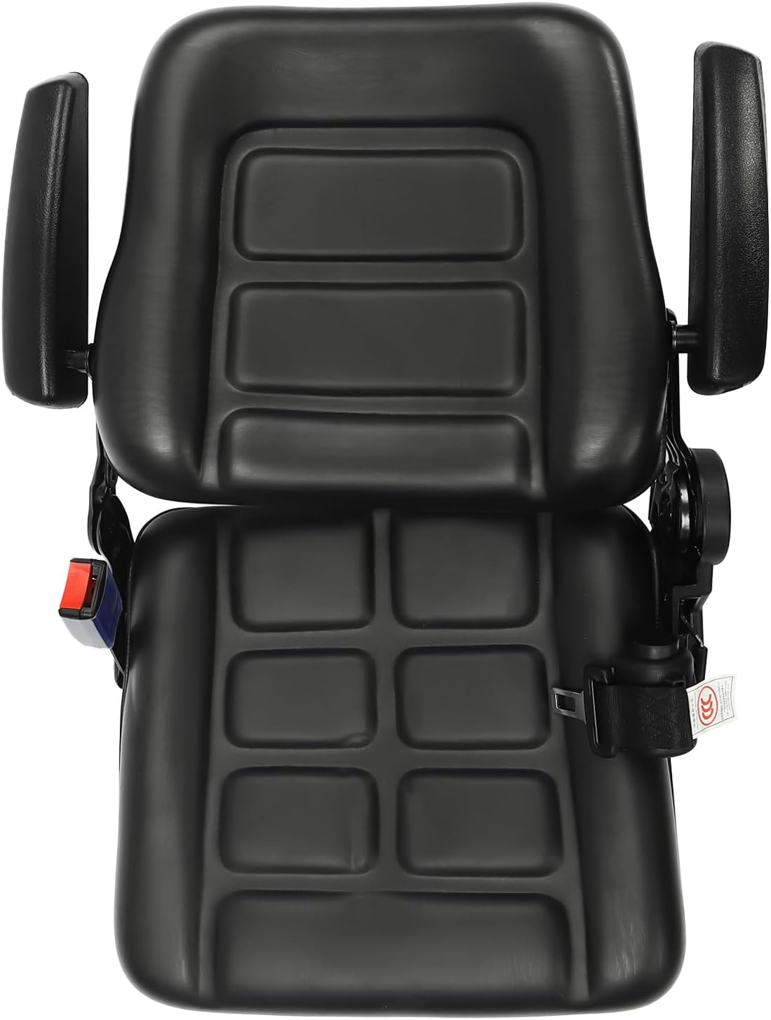 Description Do you want to improve your comfort at work? A good seat is extremely important. Our forklift seat, which is made of PVC and blister foam, is scratch and abrasion resistant and highly flexible. The adjustable back makes it easy for you to choose the right angle. It will be the ideal choice for you. Specification Color: Black Orientation: Drivers Side Vehicle Service Type: Truck Material: PVC, Sponge, Iron, Polyurethane Foam Gross Weight: 10.95kg/24.14lbs Net Weight: 10kg/22.05lbs Seat Adjustable Range: 6cm/2.36inch Forward, 8cm/3.15inch Backward Backrest Adjustable Angle: 35-180° Handrail Adjustable Angle: 90°(Upward) Product Overall Size: 47*42*48cm/18.5*16.54*18.9inch Handrail Length: 26cm/10.24inch Backrest Length: 33cm/12.99inch Details Armrests: The armrests can relieve arm fatigue caused by long hours of driving and provide great comfort for your driving. Safety Belts: The forklift seat belt effectively reduces the possibility of serious injury due to sudden stops and provides strong protection. Thickened Chassis: The chassis of the seat is made of thickened iron and is painted for durability. The thickened chassis of the seat makes the seat stable and firm. Application: It is suitable for most heavy mechanical seats, such as forklifts, dozers, aerial lifts, floor scrubbers, riding mowers, tractors, excavators, and trenchers. Included 1 x Forklift Seat All Accessories for Use Notes Please carefully refer to the dimensions before purchasing to choose the right seat.