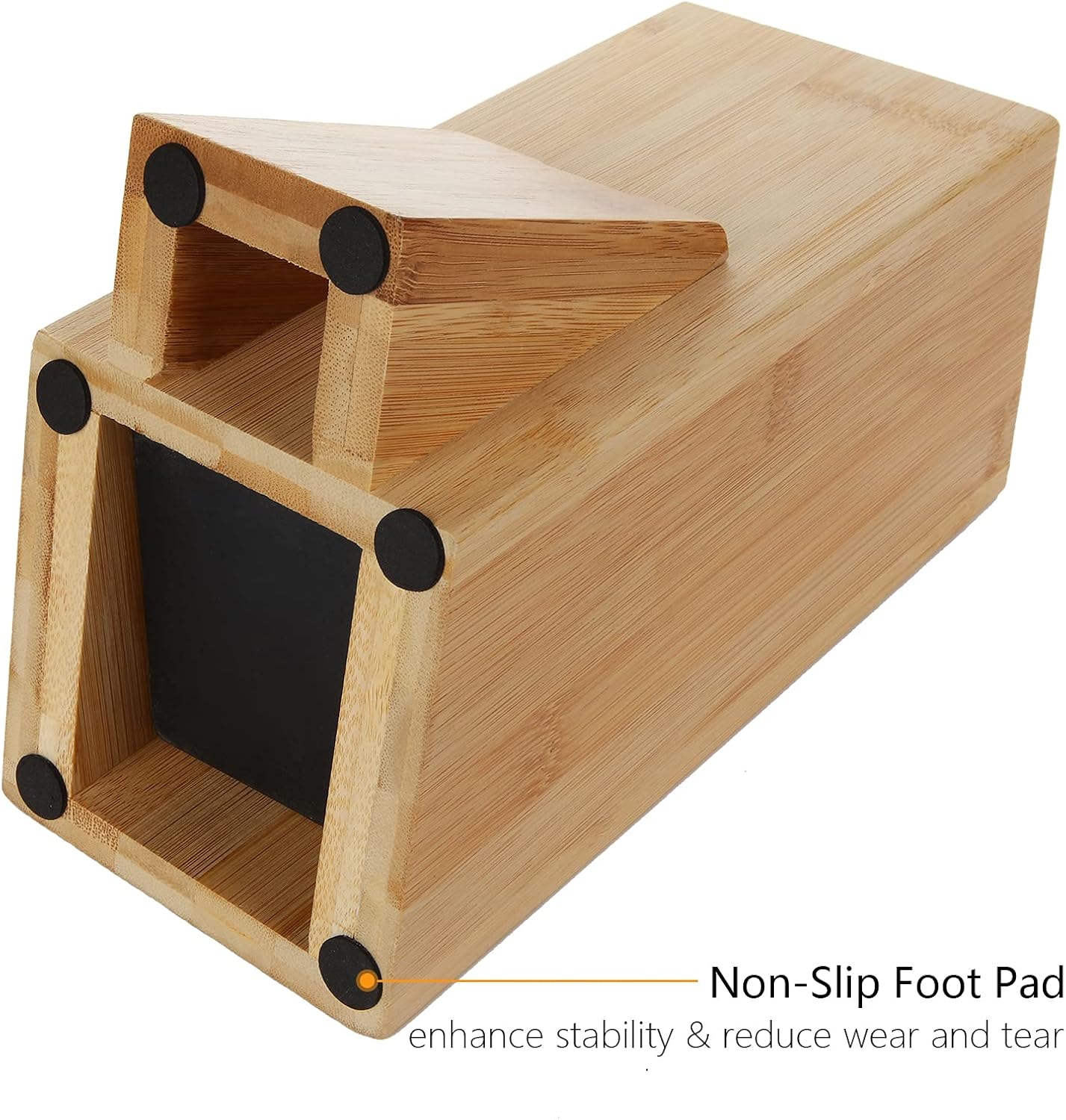 LIVTE Bamboo Universal Knife Block, Wooden Knife Holder with Slot for Scissors, Slotless Kitchen Knife Storage Stand with Removable Plastic Rods for Blades Length Up to 8 InchWhy Select Our Universal Knife Block Detachable Rods & 100Percent Natural Bamboo bamboo offers natural moisture absorption BPA free flex rods for easy cleaning, toprack dishwasher safe (No heat dry) Fits Knife Blades Up to 8Inches Long Can hold 68 knives and a scissor Won’t dull your knife blades Universal Block with Slotless Design Fit various knives in any direction, flexible and multipurposed No more align to the fixedshaped slot limitedly NonSkid Foot Pad Ensure stability for safer use Antiattrition 60 Degrees Angled Ergonomic design for easy access Won’t be easily knocked over with more touchdown area Service Any problems within 15 days, a replacement or refund is . No worries and get your knives a homeinch now! HOW TO WASH the Knife Block Wooden Box: Hand wash recommended; Rinsing in cold water, wipe and air dried. (No heat dry) Plastic Rods: Toprack dishwasher safe, air dried. (No heat dry) Specification: Name: Universal Knife Block Material: Bamboo Wood Box / PP Plastic Rods Color: Wood Weight: 4lb / 1.8kg Size: 6.3x4.3x9.6in / 16x11x24.5cm Package Included: 1 Universal Knife Block Without Knives Note: For the bamboo box, NOT dishwasher safe and NOT heatable so as to achieve a longer service time. Please always keep the knife tool set beyond kids’ reach.