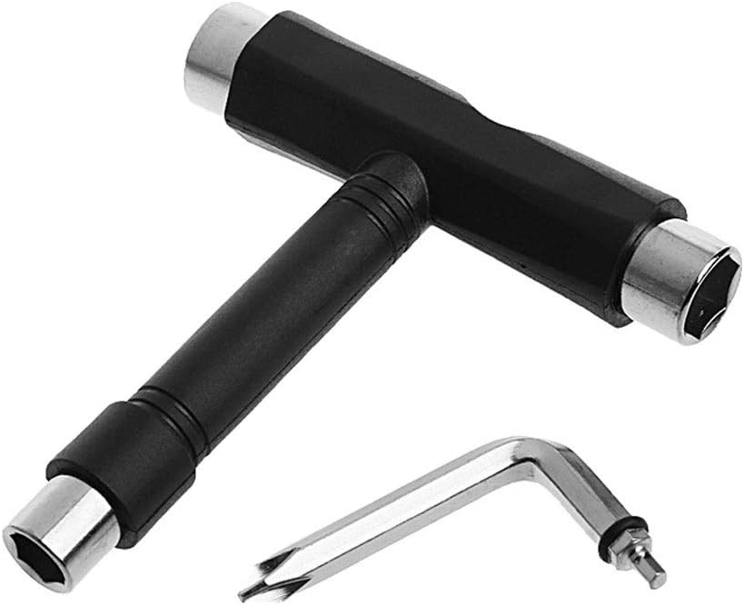 Stylish T design with professionalism and versatility.Made of structure and materials.The screwdriver is installed in the tool handle.T-shaped design, easy to use and comfortable to use.Lightweight and compact, it can be carried anywhere.Colour: BlackSize: 10 * 10.6cm / 3.94" * 4.17"When not needed, a detachable screwdriver and tool universal wrench (for truck fixing screws) can be installed in the T-handle of the tool.For skateboards, axle nuts, wheels and truck fixing screws will be installed.Suitable for almost all skateboards.Suitable for: Axle nut, main external hexagon of nail, standard nut, internal hexagon fixing screw, cross fixing screw.Package includes: 1 *Universal wrenchnotes:Please understand that due to differences in lighting or computer monitors, I cannot that the photos and real colors are the same.Due to different measurement methods, there may be a deviation of 1-2cm.