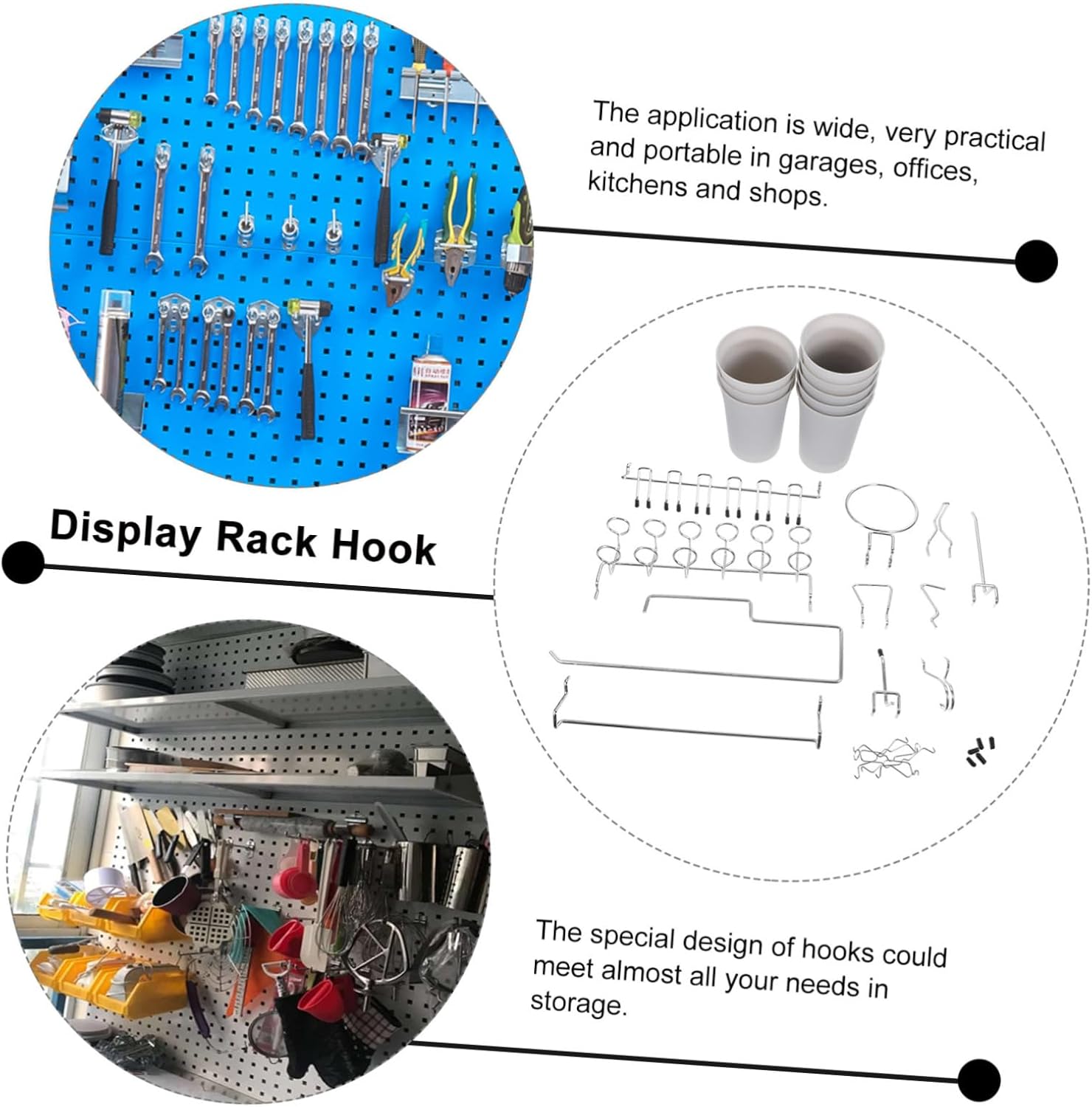 Package Include 1 x set of pegboard accessories Features -Color:Assorted Color various shaped pegboard hooks -Material:Stainless steel, ABS hooks for pegboards -Size:25.70X4.60X3.80cm/10.10X1.81X1.49in pegboard organizer accessories - This various shaped hooks are simple in design and practical in use, sure to give you a pleasant using experience pegboard tool holders. - hook for pegboard, a practical tool for keeping your pegboard in order, make your workshop organized stainless steel pegboard hooks. - Owning the and break resistance ability, very practical, with excellent texture pegboard tool utility hooks. - Pegboard hooks have rounded , no barbs to damage board holes, convenient to use pegboard hook clips. - The application is wide, very practical and portable in garages, offices, kitchens and shops pegboard tool organizer.Goods Descriptionpegboard wall organizer These DIY hooks can firmly and stably hold tools.pegboard tool utility hooks Easily hold and display your tools, so that you can easily find the one you need.pegboard hook A helper for holding pegboard tools and keep your pegboard look tidy