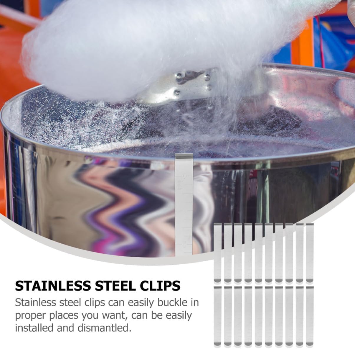 Package List 80 x Stabilizers Characteristics - Material: Stainless steel Sugar Candy Mesh Clips - Color: As Shown sugar machine accessories - Size: 1.40X0.30X11.00cm/0.55X0.12X4.32in marshmallow accessories - The clip is an essential tool for any candy-floss lover. These clips are designed to secure the mesh around the machine stainless marshmallow clip. - Reusable candy-floss mesh clips, specifically designed for candy-floss machines to make candy-floss candy-floss machine clamps. - Stabilizer Clips creating a stable and secure foundation for candy netting of candy-floss machines. sugar machine clamps - The clip provides stable support for candy netting. Essential accessory for candy-floss machines sugar making supplies. - The hardness of the stainless steel material can keep it not easy to deform under normal wear sugar making clips.Goods Informationmarshmallow accessories Are you looking for a practical candy-floss making clips? Our small clips will be your .Marshmallow Stabilizing Clips Made of stainless steel materials, it has excellent durability and practicality, efficient and practical, which will meet your needs very well