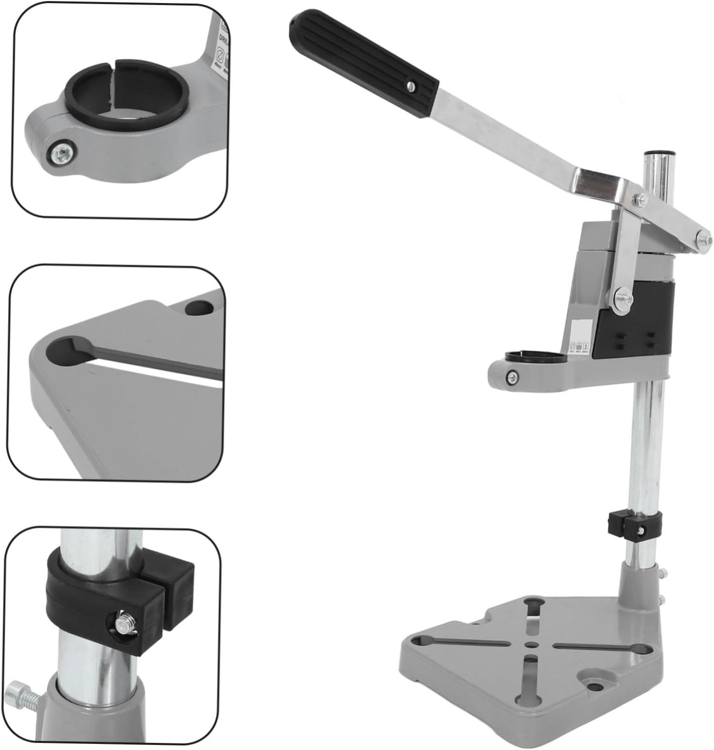 Package List 1 x Drill Press Stand Features -Size:40.00X37.00X22.50cm/15.72X14.54X8.84in bench drill holder -Color:Silver holder for drill press -Material:Aluminum alloy drill press stand -The sturdy construction of the drill press stand make it a reliable and adaptable tool that can be used in different work settings bench drill press stand. -A necessary addition to workshop, the drill press stand offers convenience and versatility for a variety of tasks portable drill press holder for hand drill. -By providing a stable and secure platform for drill press, the stand helps users work more efficiently and safely drill press holder for hand drill. -Suitable for professionals and DIY enthusiasts alike, the stand is designed to meet the needs of various users table electric drill press stand. -A versatile tool stand for a wide range of applications that can be used for various tasks hand drill press stand.Goods Descriptionbench drill adapter The drill press stand is a must-have for any DIY enthusiast or professional.hand drill press holder Its multi-functional design allows it to be used for a wide range of applications, from home repairs to woodworking and metal working.bench drill press stand The sturdy construction makes it a reliable and versatile tool for job